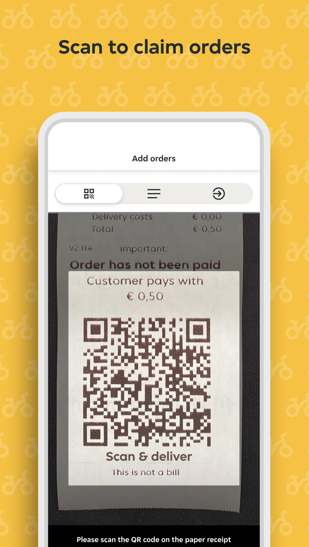 Guest access: Not sure about the app? Try it as a guest! By Scanning the QR Code on the receipt, you can use the App to deliver orders as a guest and sign up when you’re convinced.