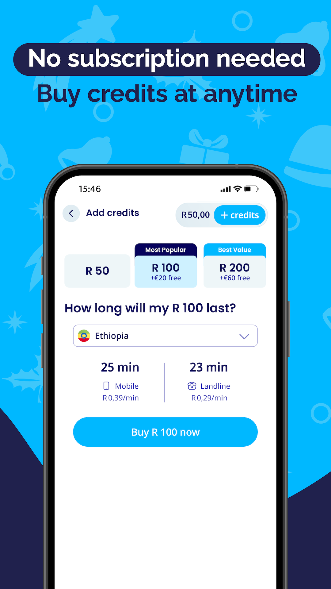 • No subscription required, just top up what you need.