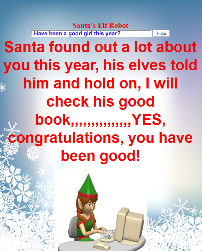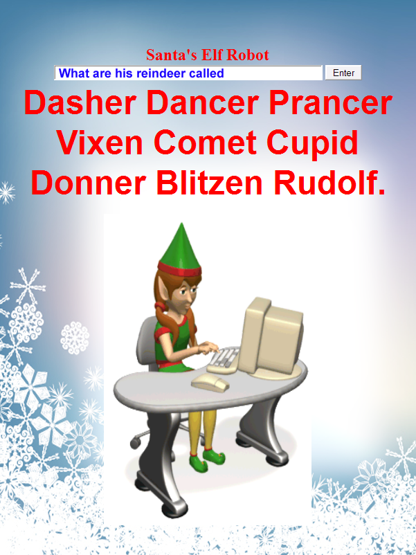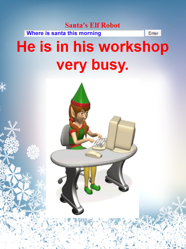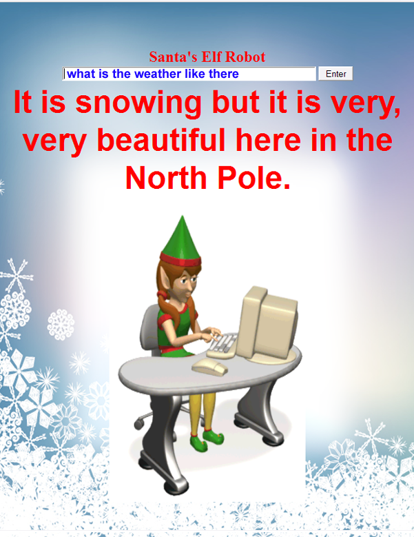 New chat engine allows amazing interaction with Santas Robot Elf at the North Pole.