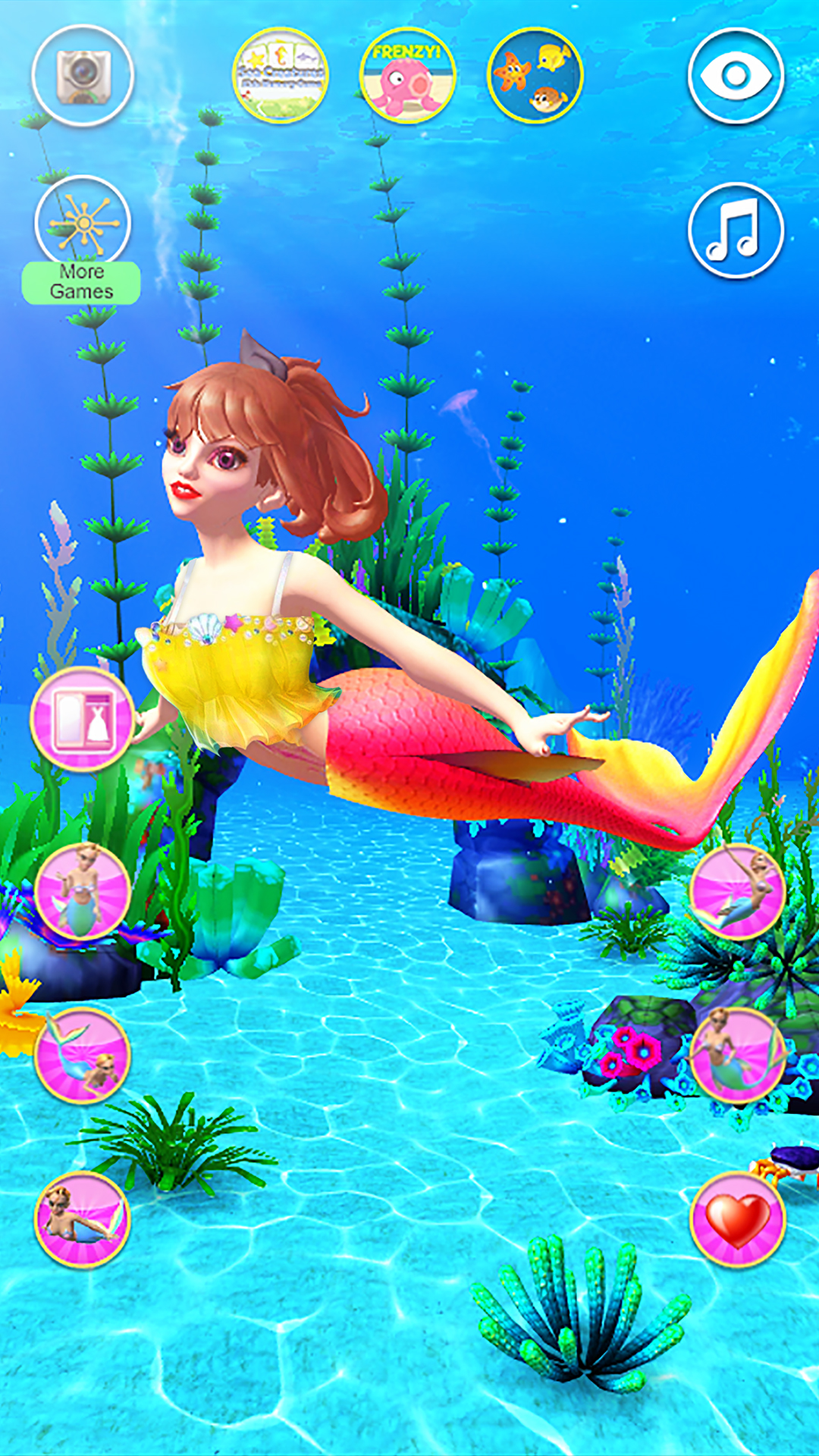 Enjoy hours of fun and laughter with Talking Mermaid. Dive into the underwater world of the beautiful mermaid princess. Talk to the beautiful talking mermaid. The Mermaid will answers with her cute voice and react to what you say or your touch. Play with Talking Mermaid: - Talk to mermaid and she will repeat everything you say with a funny voice. - Talking mermaid is really sweet. - Look at mermaid dancing. - The mermaid have a sleep. - Poke her head, arm or feet. - Play mini games, puzzles and more to earn coins. - Buy clothes for Mermaid and change her appearance. Beautiful Mermaid will become your best friend as you play with her every day, and you will have a lot of fun with her. Download Talking Mermaid now and have a lot of fun! If you like Talking Mermaid then please rate it with 5 stars! Thank you!
