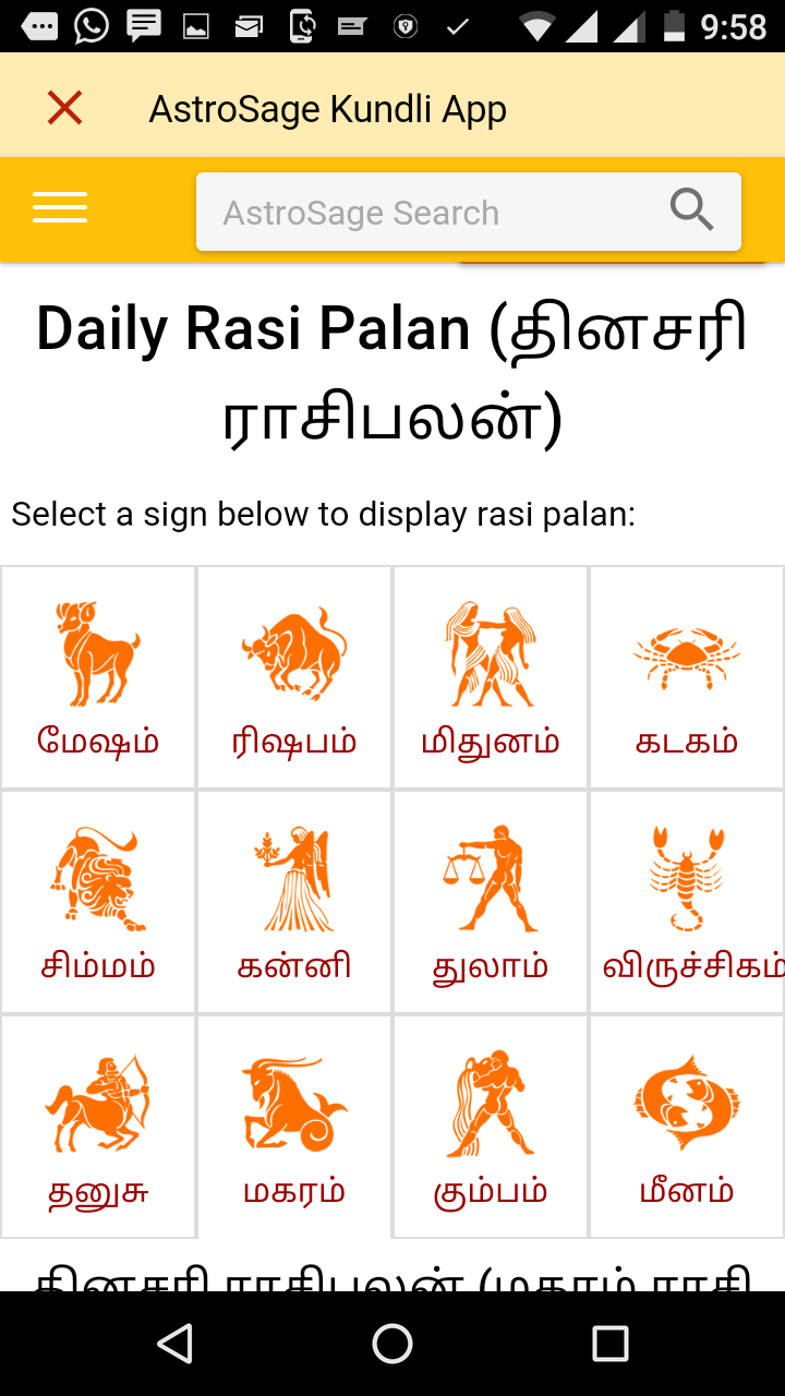 Tamil Jathagam and Calendar (Package Name: com.tamil.jathagamCalendar) is developed by News App Newspaper and the latest version of Tamil Jathagam & Calendar 2.25 was updated on May 28, 2019. Tamil Jathagam & Calendar is in the category of Lifestyle. You can check all apps from the developer of Tamil Jathagam & Calendar. Currently this app is for free. This app can be downloaded on Android 4.1+ on APKFab or Google Play. All APK/XAPK files on APKFab.com are original and 100% safe with fast download.
