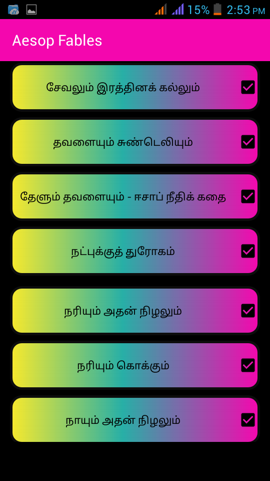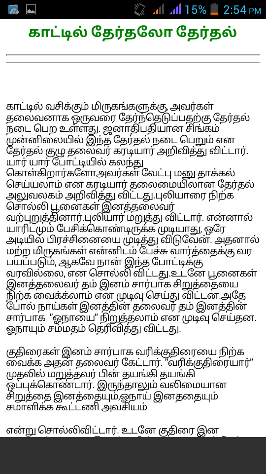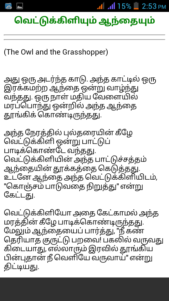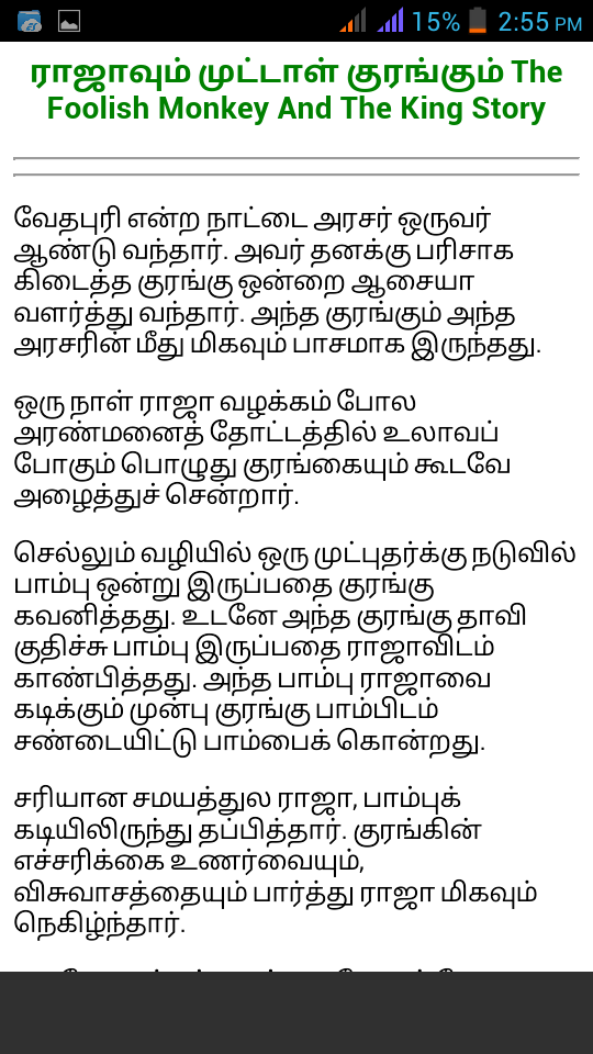Tamil kadhaikal, Tamil knowledge stories, Tamil moral stories,Tamil panchatantra stories, Thenali raman stories, Tamil bedtime stories, Tamil short stories, Tamil courage stories, Tamil comic stories, Tamil Christmas stories. More over 100+ stories in this Tamil Stories App were related to the below topics, - Tamil moral stories - Tamil short stories - Kulandhai kathaigal - Motivational stories in tamil - Romantic stories in tamil - Tamil good stories - Moral stories for students in tamil - Tamil comedy stories - Tamil motivational stories - Interesting stories in tamil - Tamil latest stories - Siru kathaigal in tamil - Ambulimama stories in tamil - Funny stories tamil - Tamil novel stories - Tamil best stories - Tamil stories for reading - Best tamil stories - Tamil nursery stories - Tamil drama stories - Tamil inspirational stories - Tamil cinema - Old tamil stories - Tamil short stories for students - Tamil long stories - Tamil daily stories - Tamil knowledge stories - Tamil magazines - Tamil bed stories - Tamil fantasy stories - All tamil stories - Tamilkathaikal - Tamil kavithai - Tamil positive stories - Tamil proverb stories in tamil - Tamil youth stories - Tamil school stories - Tamil kadhal kadhaikal Global search : bedtime stories, short stories, christmas stories, short story, the short story, a short story, comic stories, courage story, courage stories, story of courage, friendship stories, friendship story, a story of friendship, mischief stories, mischief story, naughty story, tale of kings, tamil short stories in tamil language, neethi kathaigal in tamil, short comedy stories in tamil, tamil short stories, short love stories in tamil, tamil short stories sujatha