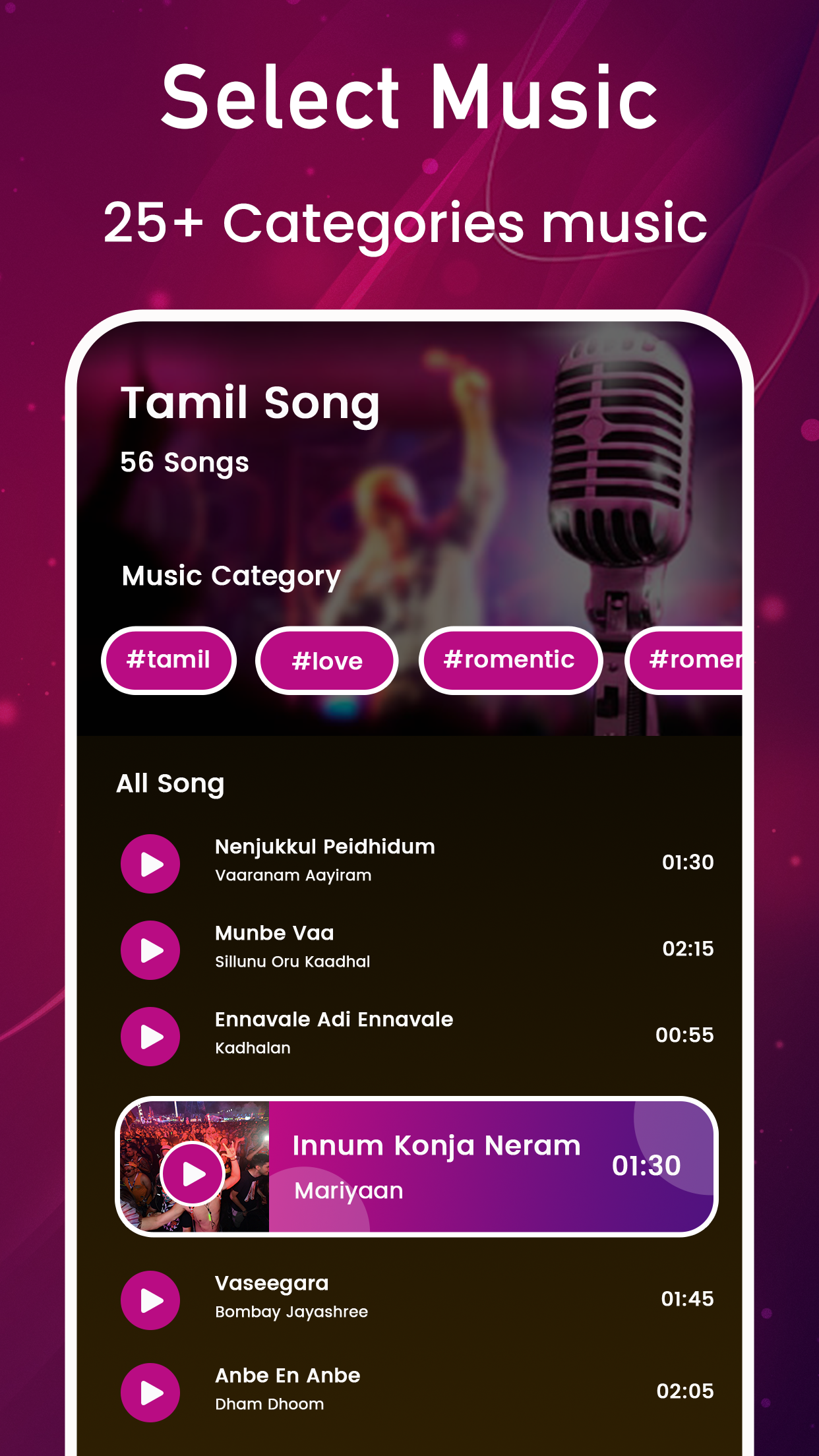 Tamil Video Maker (Package Name: com.photoontext.videoeditormaker.tamilvideomaker) is developed by HD Video Player 2020 and the latest version of Tamil Video Maker With Song 1.6 was updated on February 3, 2023. Tamil Video Maker With Song is in the category of Video Players & Editors. You can check all apps from the developer of Tamil Video Maker With Song. Currently this app is for free. This app can be downloaded on Android 5.0+ on APKFab or Google Play. All APK/XAPK files on APKFab.com are original and 100% safe with fast download.