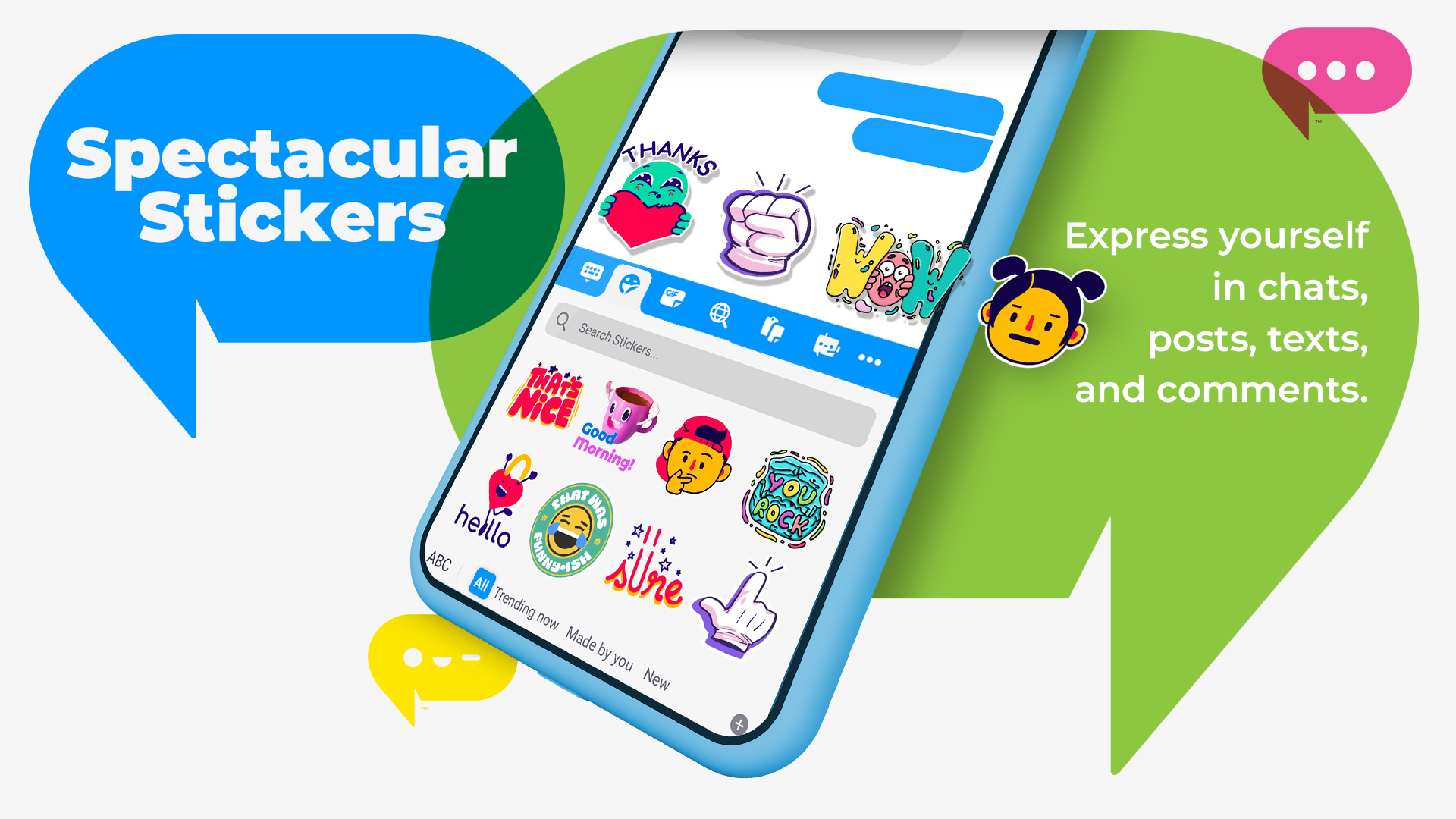 Express yourself like never before with AI-powered typing, hundreds of exclusive stickers, a vast array of perfect-reaction GIFs, user-first privacy, and a personalized display just for you.