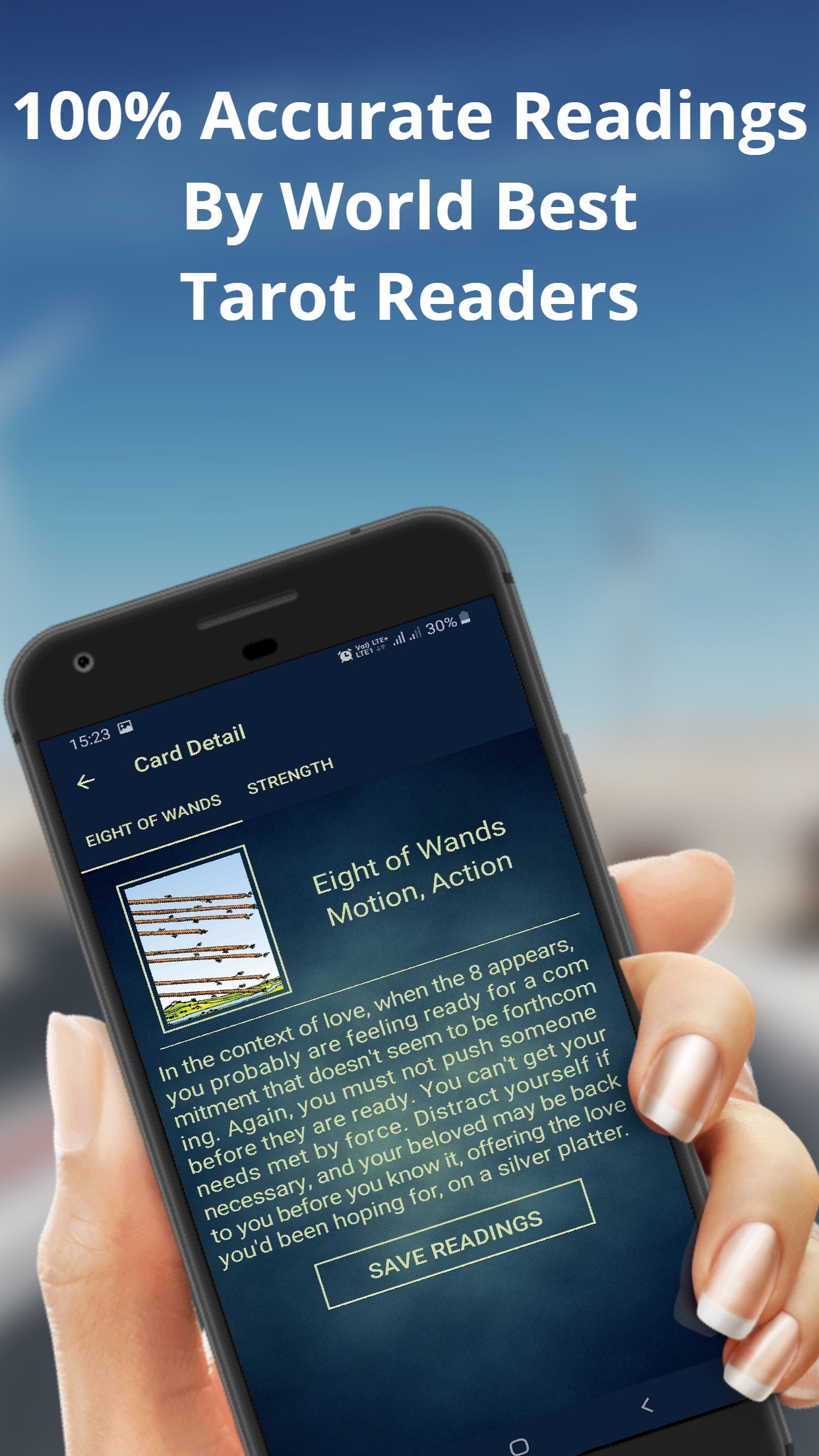 Tarot card reading app will foretell the current status of your health. Is there any health issue? Any issue to be careful of? How to prevent or cure it? If the time is not convenient, you are busy or in a rush and, cannot concentrate, we recommend that you carry on and finish the tasks in hand. Return to the Tarot cards when you are ready and have the time to look into your soul.