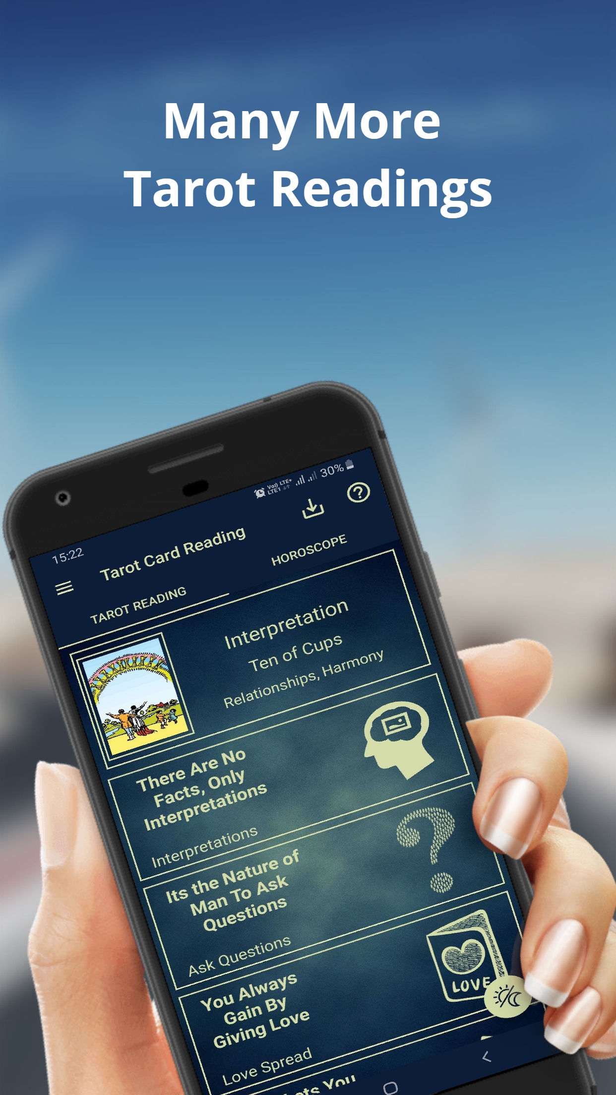 Tarot Reading (Package Name: freeTarotReading.TarotReading) is developed by Daily Horoscope & Tarot and the latest version of Tarot Card Reading 3.5 was updated on November 6, 2025. Tarot Card Reading is in the category of Lifestyle. You can check all apps from the developer of Tarot Card Reading. Currently this app is for free. This app can be downloaded on Android 7.0+ on APKFab or Google Play. All APK/XAPK files on APKFab.com are original and 100% safe with fast download.