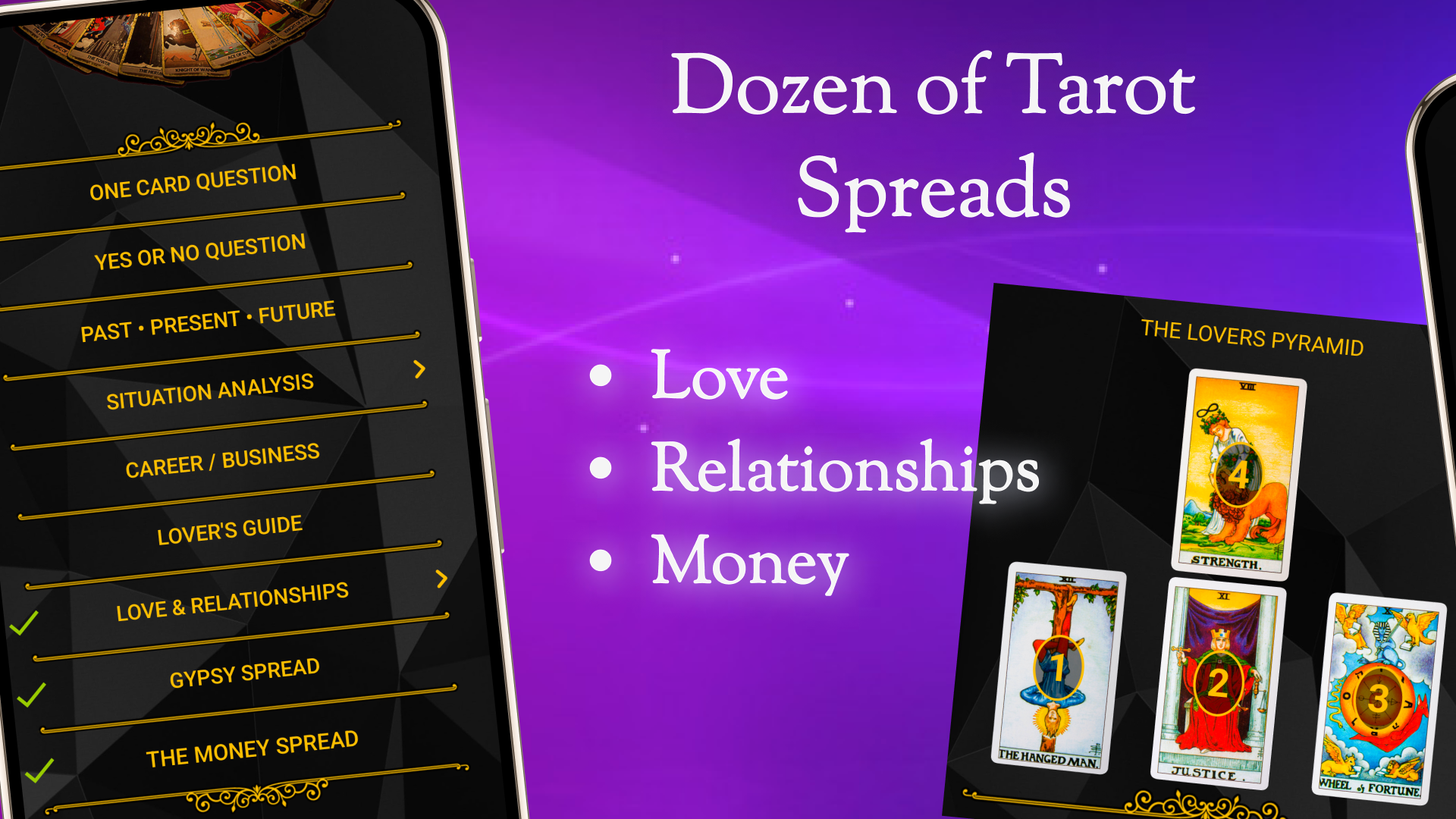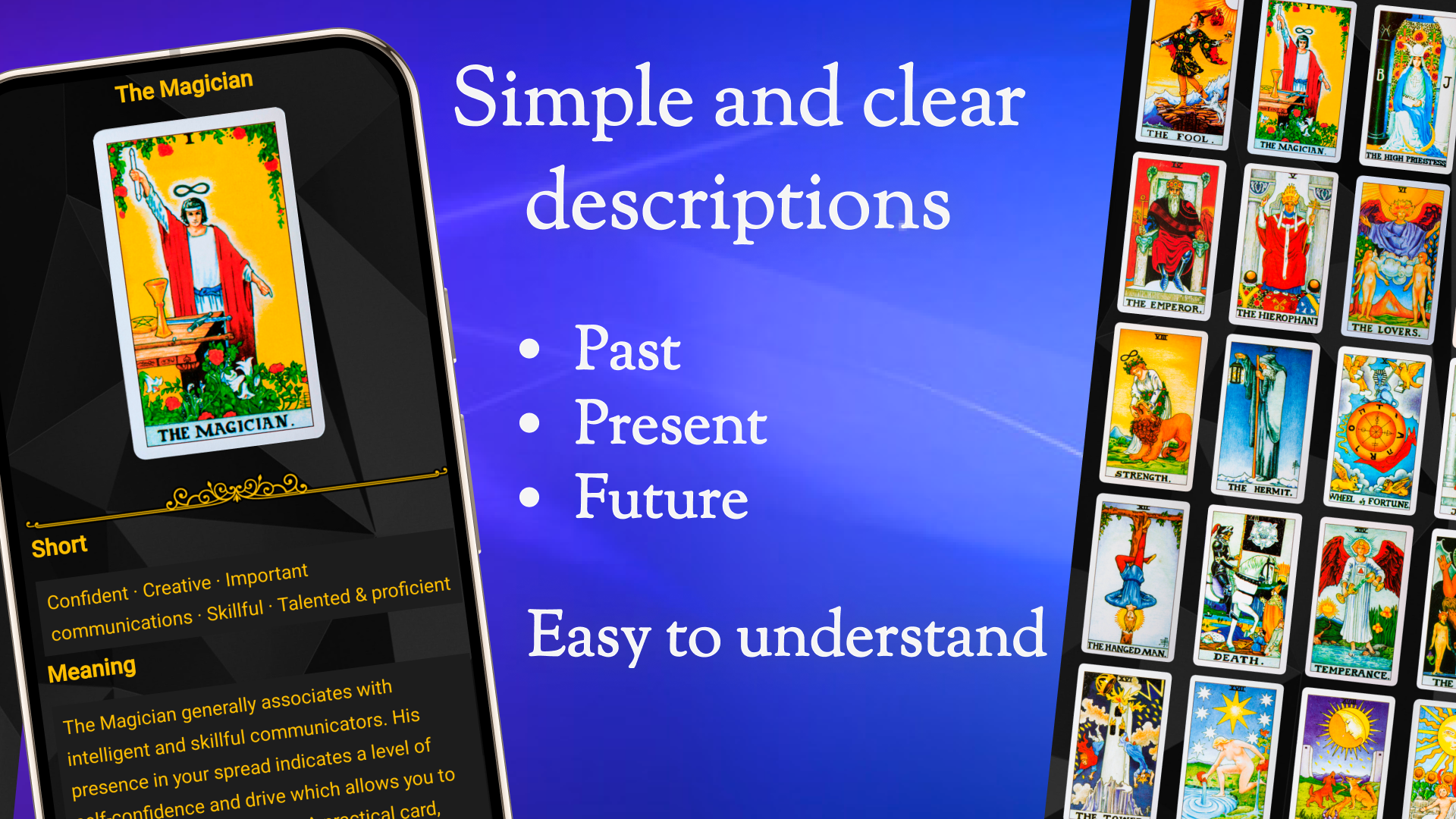 Tarot Readings for Love, Money, Career & Future – Easy Step-by-Step Cards. Now in the Tarot spreads "Card of the Day", "Yes/No", and "One Question — One Card", you can receive an interpretation from the AI GPT Assistant. The AI GPT fortune teller uses smart assistant technology to help you understand the meanings of the drawn cards. How to read the Tarot: 1. Select the desired Tarot reading. Want to know the near future, unravel Tarot day (divination for each day), or know the Tarot prediction of a relationship, or divination of love, or maybe you want to find out the attitude of a person and what he thinks about you? Finding the right reading is the basis for predictable divination results. Tarot cards can explain the past, interpret the present and predict the future. There are many kinds of Tarot cards and Tarot cards and Tarot card readings — from simple, where only one card is needed — such readings are often used to answer the question "Yes" or "No" or express guessing "Card of the Day", to complex versions like "Gypsy's Riddle" or a full analysis of the situation on the tarot cards. 2. As you've chosen to do the psychic reading, you need to concentrate and mentally ask a question, asking the cards to give you an answer or a hint prediction. Tarot trusted cards themselves Ryder Waite — an ancient mystical and esoteric oracle tool that consists of 22 major arcana (The Sun, Lovers, The World, The Moon and other) and minor suits — Swords, Rods, Cups and Pentacles (coins). Their soul and power are given to them by the medium — a keen psychic person who works with the cards. Cards and their images are closely linked with the subconscious and allow you to activate the intuition of man. Tarot are always polysemantic. There are no good or bad cards — they always depend on the specific situation. For those who want to decompose the Tarot for love, the Love Tarot reading will tell about the relationship with a loved one and/or loved one. Girls often do Tarot divinations for a man. In addition to the love relationship, the cards can tell about the relationship at work or in business — revealing the question "What does the man think of me", as well as predict the near future, analyze the situation and suggest what to do, and what is the prediction of the result. 3. After asking the question, choose the cards until you finish the layout. Then you can read the meaning of the tarot card in the corresponding position. Though interpreting Tarot predictions requires study, we've chosen simple and clear interpretations that you can use for free, every day. The Rules of Trusted Tarot Divination You should not ask the daily Tarot the same question more than once a day or too often. Tarot cards can turn on you if you don't trust their predictions and are constantly double-checking the reading. There is a Tarot guide in the app where you can read the descriptions and meanings of the cards. Tarot Divination — Oracle cards. Install for free and guess the oracle Tarot cards online - for relationships, for the future, for a person, for love - do the ruminations to know predictions of the future, understand the situation, or just ask the question from the card of the day — Yes or No Tarot questions. If you enjoyed the divinations, we would appreciate your evaluation and feedback. Also, we are happy to read your wishes and suggestions to improve our Tarot divinations. Be sure to let us know if your predictions come true and how accurate they are! You can use all features of this service free of charge. To use the premium features of the application you need to make a subscription, or use for free for watching promotional videos. Write your suggestions for improvement to us on the mail.
