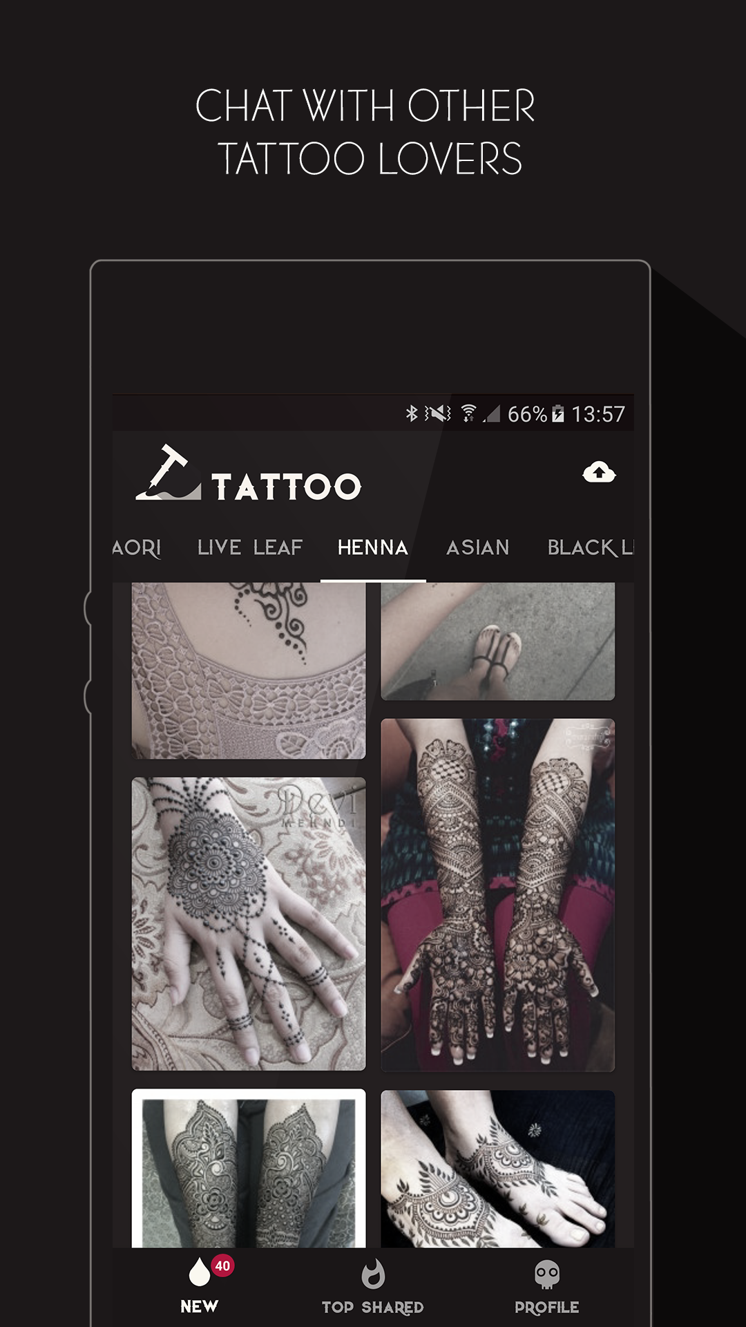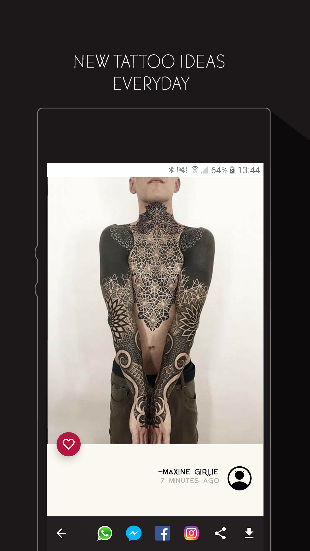 Discover trendy tattoo designs with our inspiring tattoo app, the best way to decide which tattoo to get next! Here you can find tattoo motives and drawings from over 25 categories: Tribal, Maori, Rose, Quotes & Sayings, Single Line, White Ink, Watercolors, Henna, Flowers, Skull, Fantasy, Animals and many more! ▶︎ Discover brand new tattoo trends from over 25 categories ▷ Find your perfect tattoo ▶︎ Share tattoos with your friends or your tattoo artist on WhatsApp, Facebook and Twitter ▷ Hundreds of new trendy tattoos every day ▶︎ Upload your own tattoo pics and see if oher people like them ▷ Save your favourite designs ▶︎ Chat with other tattoo and piercing lovers ▷ Exciting and sexy styles for men & women ⭐️ Stars, 🌹 Flowers, ⚓ Anchors oder ❤️ Hearts Here you will find tattoo pictures & sayings that will go under your skin!