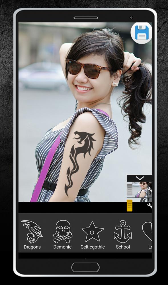 "Tattoo Photo Editor" is application provided nice tattoos for everyone, with a simple interface and easy to use, it will create wonderful tattoos photo with high definition Easy to use and quickly save and share, you can manager saved photo with many functions as editor, delete, add message bubbles, sticker, set wallpaper, view detail, etc provides effects and design professional will give you the best tattoos photo collage for everyone it is suitable for anyone? "Tattoo Photo Editor" is suitable for everyone, especially for men and women want to create wonderful tattoo photo from their photo features - collection of nice tattoo for everyone include different styles as dragon, color, love , kanji , etc - many beautiful overlay and effects - the powerful photo editor tools for best photo - add message bubbles, and over 5000 stickers - photo storage and management easy photo editing functions, delete, share, set as wallpaper, view details - easy save and share with Google Plus, Facebook, Instagram, SMS, Gmail, etc - etc