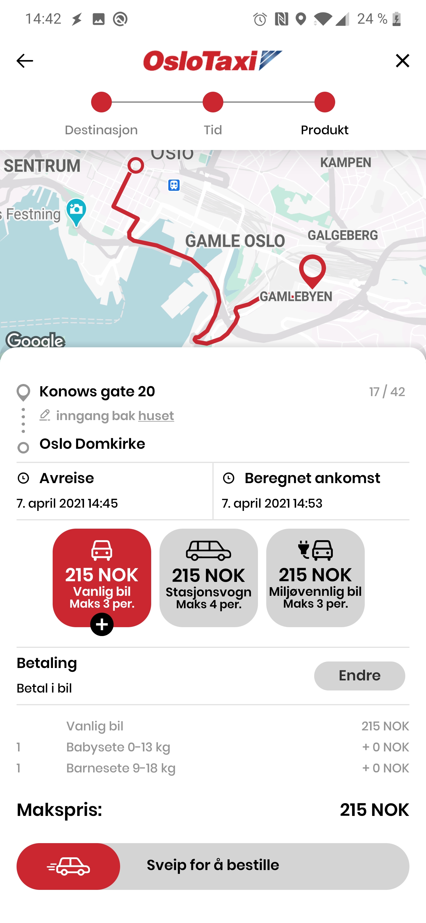• Three payment options to choose from: Cards in the app, VIPPS or in the car