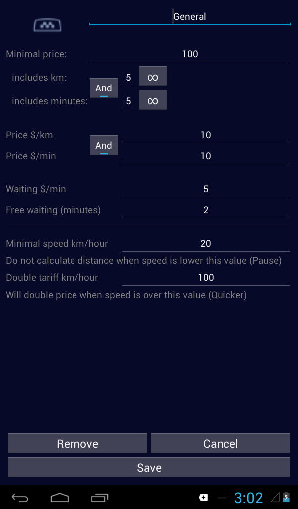 1.055: Many fixes and improvements. Support for latest versions of Android. MapFactor added. Some settings changed by default. Dropped support for versions of Android below 4.0. 1.049: Many fixes. Mode Out-of-town was fixed too. Sort tariffs by name. Sort statistics by date. 1.047: You can move widget. Customize main menu. Statistics covered by password too. Many fixes and improvements.