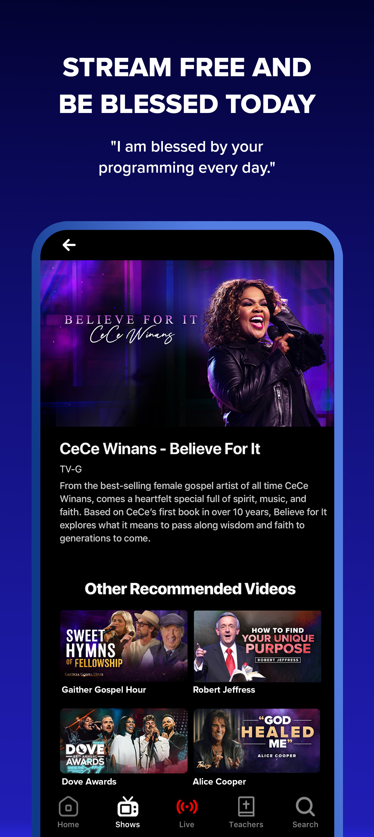 - Watch Anytime - Catch up on your favorite teachers, worship and shows on demand.