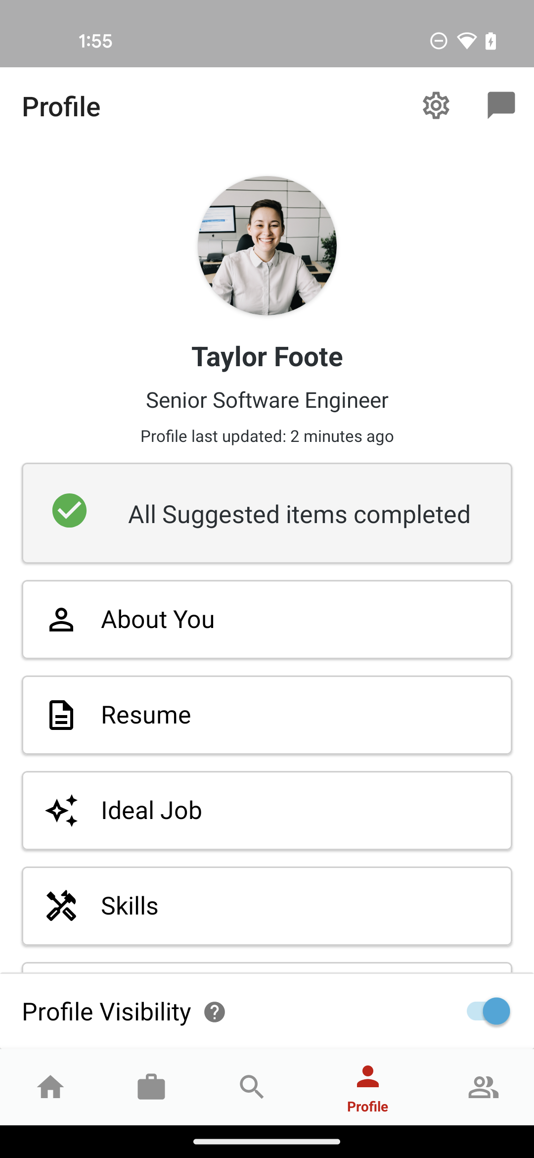 - Manage whether recruiters can find you by making your profile visible directly in app.