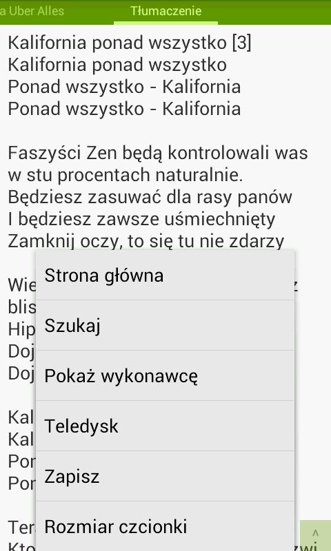 *ONLY IN POLISH* Aplikacja Tekstomobil pozwala wyszukiwanie i przeglądanie tekstów piosenek Twoich ulubionych wykonawców gdziekolwiek jesteś. Program korzysta z zasobów największego serwisu z tekstami piosenek w Polsce – www.tekstowo.pl. Liczba znajdujących się tam utworów przekroczyła 500 000! Umożliwia także oglądanie teledysków, czytanie tłumaczeń i zapisywanie znalezionych tekstów. Tekstomobil pozwala na wyszukiwanie po tytułach i wykonawcach ponadto aplikacja pozwala na wyszukiwanie piosenek po słowach. Aplikacja jest darmowa - wyświetla reklamy. NIE WYŚWIETLA REKLAM W PASKU NOTYFIKACJI ORAZ NIE UMIESZCZA IKON NA PULPICIE - NIE JEST WIRUSEM. Dodatkowe tagi: teksty piosenek polskich, słowa, teledyski, śpiewnik, tłumaczenia, kolędy, tekstowo