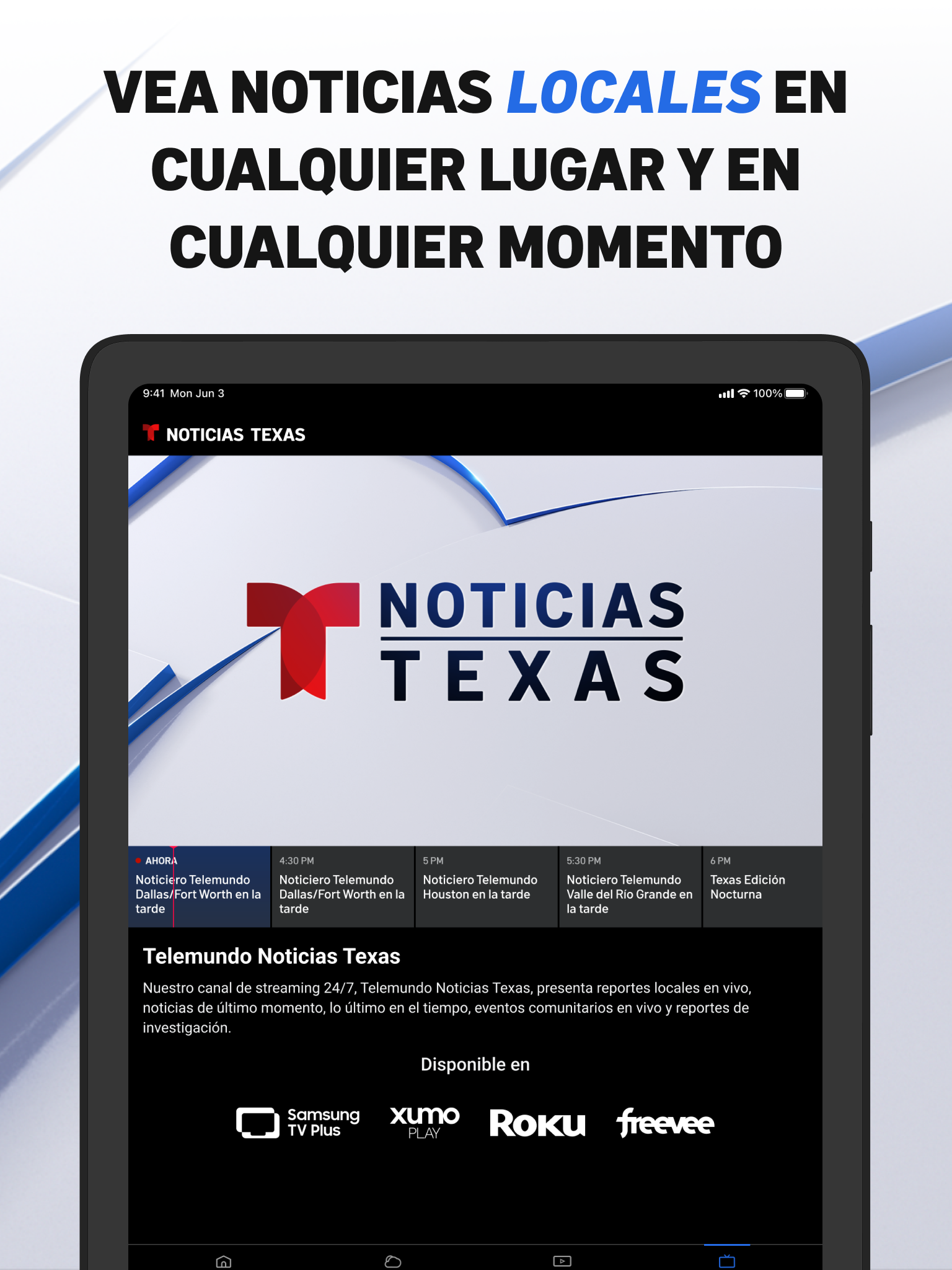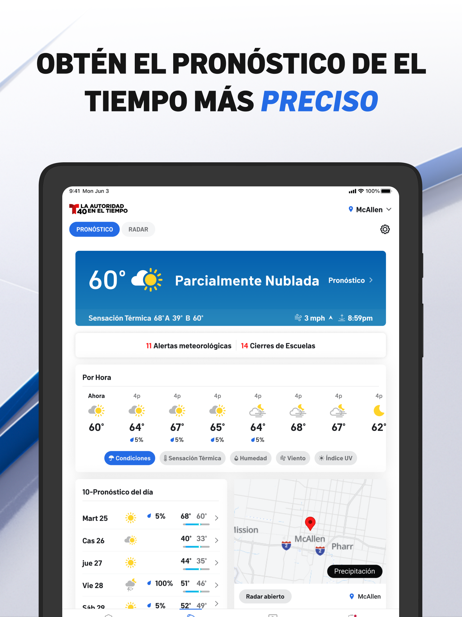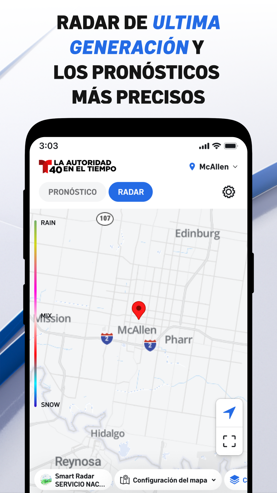 La rediseñada app de noticias y del tiempo de Telemundo 40 te conecta con los mejores contenidos locales, los pronósticos del tiempo más exactos, noticias de último momento, TV en vivo, y periodismo investigativo. LA AUTORIDAD EN EL TIEMPO PARA MCALLEN + Pantalla de inicio del tiempo personalizable con módulos meteorológicos que puedes reorganizar + Centro de ubicación mejorado para agregar nuevas locaciones y configurar alertas meteorológicas + Radar exclusivo en tiempo real + Pronóstico de 10 días para la región de Santa Rosa, Edinburg y McAllen + Pronósticos cada hora con gráficas personalizables + Información de pronóstico detallada que incluye índice UV y punto de rocío + Alertas del tiempo para tu área + Información sobre cierres escolares por mal tiempo en los condados de Texas ALERTAS DE NOTICIAS EN VIVO Y VIDEO + Alertas personalizadas para noticias locales de McAllen Tx y de la frontera entre México y Estados Unidos + Sección con noticias de última hora que muestra los artículos en orden cronológico inverso + Centro de alertas que muestra las noticias y tendencias más importantes + Mira en vivo los noticieros de Telemundo 40 y otros contenidos por streaming + Sección específica de videos, acceso total y deportes, incluyendo el mejor contenido de la Copa Mundial CREA UN PERFIL DE TELEMUNDO 40 + Guarda artículos y videos para ver más tarde + Sincroniza tus preferencias de la app y suscripciones a los newsletters en todas las plataformas de Telemundo y NBC INVESTIGACIONES DE TELEMUNDO RESPONDE Y MÁS + Los galardonados reportajes de Telemundo 40 Investiga + Telemundo 40 Responde resuelve tus problemas como consumidor y lucha para que te devuelvan tu dinero + Noticias financieras de CNBC + Noticias locales y nacionales de NBCU Local El app de noticias y el tiempo de Telemundo 40 McAllen incluye un software de medición patentada de Nielsen que te permitirá contribuir en estudios de mercado, como los TV Ratings de Nielsen. Por favor visita www.nielsen.com/digitalprivacy para más información. No venda mi información personal: https://www.nbcuniversal.com/privacy/notrtoo-spanish?brandA=Owned_Stations&intake=Telemundo_40 Aviso de California: https://www.nbcuniversal.com/privacy-policy/aviso-de-california?intake=Telemundo_40 Telemundo 40’s redesigned news and weather app connects you to the top local content, the most accurate weather forecasts, breaking news, live TV, and investigative journalism. MCALLEN WEATHER ALERTS + Exclusive real-time radar + 10-day forecast for Santa Rosa, Edinburg and McAllen + Hourly forecasts in the morning and afternoons with customizable graphics + Detailed weather information including UV index and dew point + Information on school weather closings in Texas counties TEXAS LIVE NEWS ALERTS, TRAFFIC UPDATES AND VIDEO + Customized alerts for local McAllen news and national U.S - Mexico border news including the latest on immigration + Breaking news section showing articles in reverse chronological order + Alert center that displays the most important news and trends you need to know about + Watch live newscasts from Telemundo 40 McAllen and other streaming content + Specific video, entertainment and live coverage of sports, including coverage of the World Cup TELEMUNDO RESPONDE INVESTIGATIONS AND MORE + Telemundo 40 Responde solves your consumer problems and fights to get your money back + Business news from CNBC + Local and national news from NBCU Local