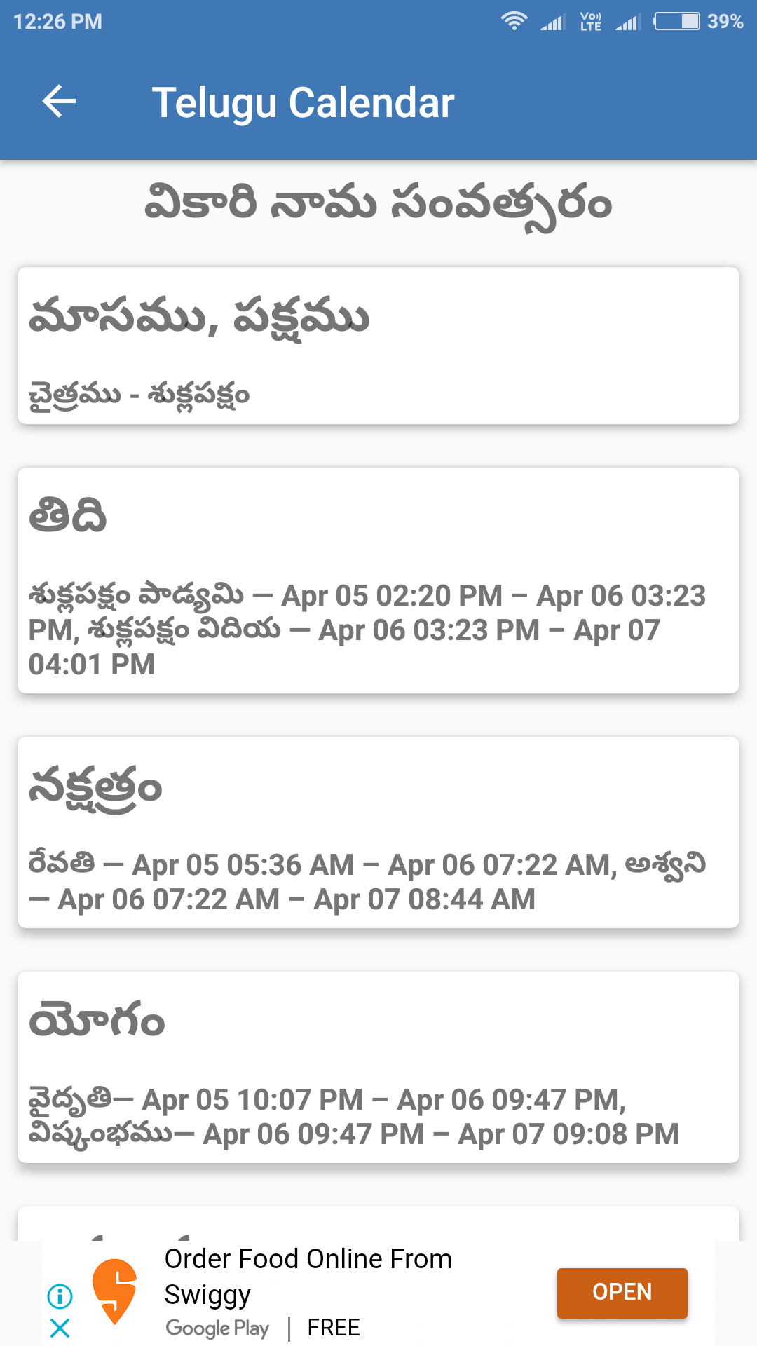 Telugu Calendar 2019
