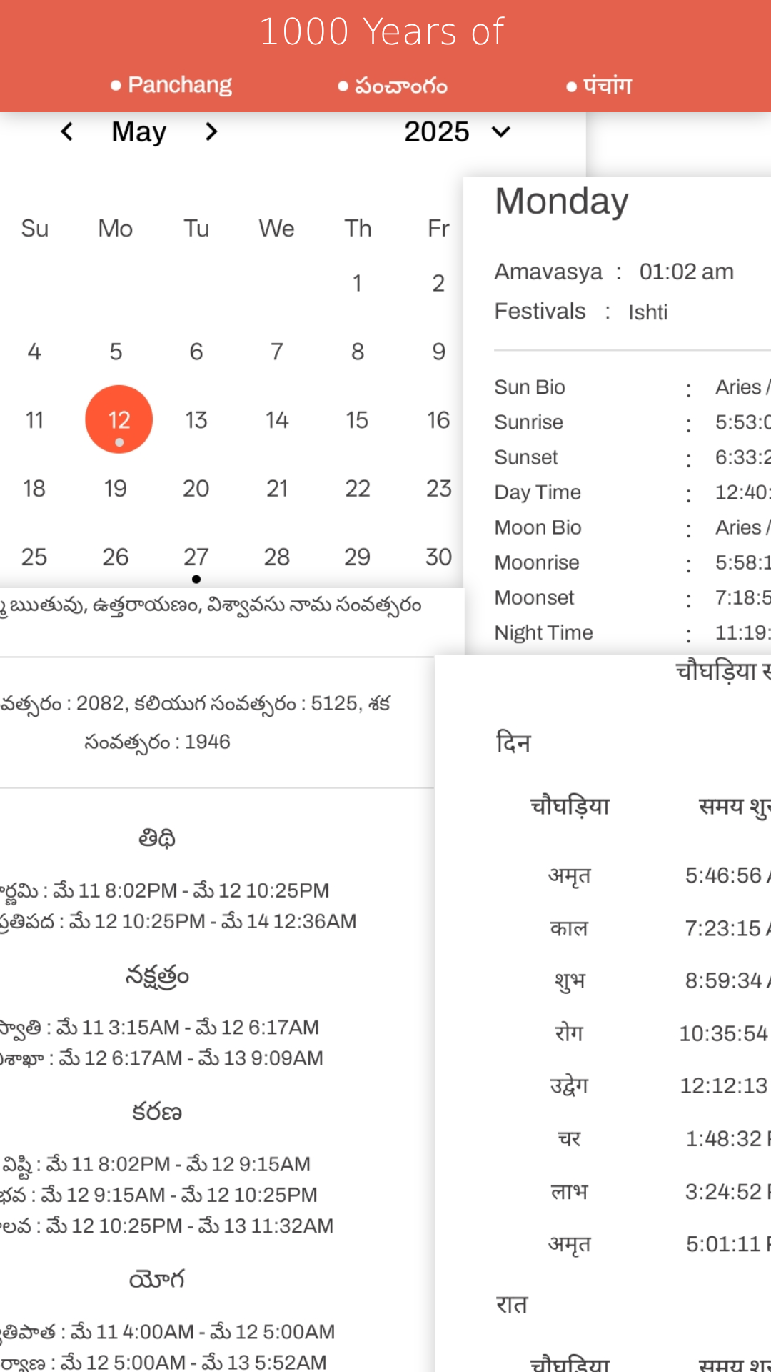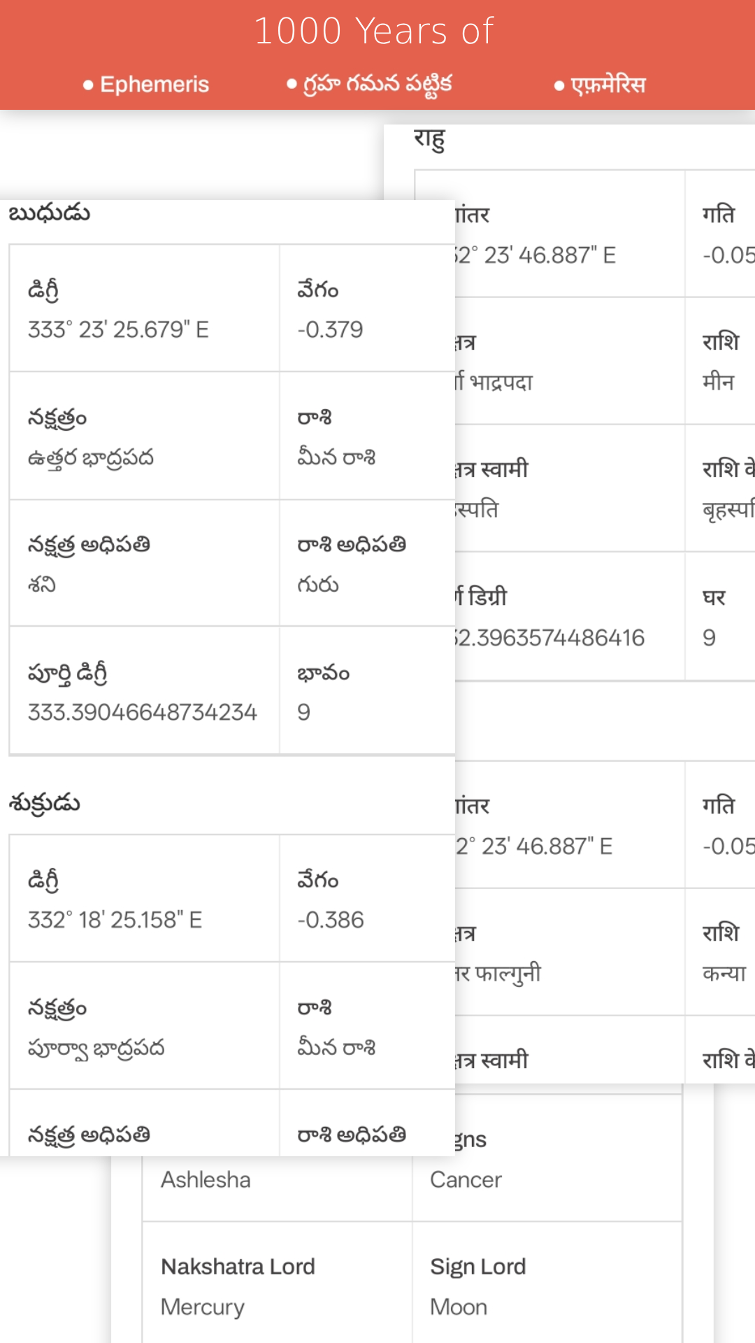 Telugu Hindu calendar panchangam android app serves 1000 years Hindu calendar panchangam, festivals, kp astrology/kundli, numerology and ephemeris. This telugu calendar panchangam hindu version is available in telugu,hindi and in english languages along with 84,000 geo loactions and you can use rest of locations using latitude and longitude anywhere of the world. In Telugu calendar panchangam hindu content of 1000 years exists with tithi, vaar, nakshatra, karana, yoga, sunrise, sunset, sunsign, moonrise, moonset, moonsign timings and their names along with paksham,ruthuvu,ayanam,year's names and numbers. Under Telugu Calendar panchangam you can get auspicious and in-auspecious timings of Abhijit muhurtha and brahma muhurtha and rahukalam yamagandam and gulika kalam timings easily. For a better user experience we have provided Hora and chogadiya day and night timings under hindu calendar panchangam only. Under Telugu Hindu Calendar panchangam ephemeris section, you can easily access the content of ephemeris of 1000 years. under Telugu Calendar Panchangam, you can generate kP kundli of south Indian,north Indian,east Indian charts and their retrogate planets and combust and along with 13 celestial planet positions, house numbers, sign, sign lord, nakshatra,nakshatra lord, sub lord, sub sub lord and their house cups. under Telugu hindu calendar panchangam numerology, You can generate auspicious numbers of you birth date along with ruling planet, gemstones, favourable metal, auspicious color and day and mantra and luck number along with prediction report. Celebrate your religion with access to all major Hindu festivals, ensuring you never miss an important celebration again. Crafted using the renowned Lahiri system, our panchang content is backed by the accuracy of expert astrology, powered by Astro Avastha. And as a unique bonus, shop for precious rudraksha and auspicious jewelry directly through the Astro shop section, enriching your spiritual journey. Best of all, the Telugu Hindu Calendar Panchangam is a free app with offline access, allowing you to tap into spiritual wisdom anytime, anywhere. Elevate your life with this essential tool for every Hindu seeking harmony, guidance, and insight. Download now and align your life with the cosmic rhythm!
