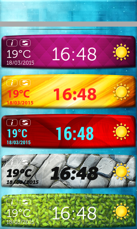 ☀Temperature Clock Widget ☀ is super cool widget for your phone screen. Searching for unique widget that shows digital clock and weather conditions? “Temperature Clock Widget “ is the latest widget for your mobile and you could be first to have this beautiful clock that display the current weather temperature. Access current weather data for any location on Earth and find out current temperature and precipitation around the world. 10 digital clocks that show the weather forecast, 5 unlocked and 5 locked. Every day new clock is available. Put wonderful clock and weather widget on your home screen. Top widgets of different sizes and shapes. Easy to use for adults and children. Add widgets to beautify your screen. Would you like to decorate your home screen according to your own taste or style? This fabulous weather widget is perfect for your home screen. Clock and weather widget is available in many different shapes and sizes. Choose different colors, and you will also be able to see multiple weather symbols such as wind, rain, snow, sun and moon. This widget will show snowflakes for a snowing, and clouds for a partly cloudy, rain for raining and sun for sunny and extremely hot weather. Download ☀Temperature Clock Widget ☀ and beautify your screen. ☀Temperature Clock Widget ☀ will allow you to set your favorite clock so hurry up and download this amazing free “weather widget”. You will see the local weather or the world weather. Just choose a location and your “clock widget” will show you the weather temperature in Celsius or Fahrenheit as well as the humidity, pressure, cloudiness and wind speed. Get the detailed and most reliable weather temperature widget. Perfect clock for your Samsung Galaxy phone is waiting for you. Beautiful and practical “digital clock widget” will also display weather conditions on home screen. This widget provides a home screen clock, date and weather widget for everyone’s taste. You will know whether it’s hot and sunny or cold and snowy. Set different temperature clock which changes as the weather change. Looking for up-to-the-minute weather reports? Look no further. You'll find weather temperatures, wind speeds, snowfall accumulation, forecasts and everything else you'll need to know to plan your day. Download this amazing widget and set your favorite digital clock that shows the weather forecast. Get weather forecast which includes high & low temperatures, rain, snow, ice. Maximum daytime or minimum overnight temperature in degrees Fahrenheit! Want widget that shows the average temperature for today? Weather forecast and clock lets you track and display weather for any location! Awesome “digital clock” can be yours for free. The most accurate weather widget is a click away from you. Our weather app is simple, clear and free. ☀Temperature Clock Widget ☀ a free app for Android™, offers all the weather information that you need. A clock widget that displays the time, the date and even the weather! There are many sizes and kinds of clocks for your home screen. With amazing digital clock on your mobile, you will be able to see weather conditions outside. With these amazing “widgets for Android™” you will enjoy like never before. *Android™ is a trademark of Google Inc. *This widget is not affiliated with or endorsed by Samsung.