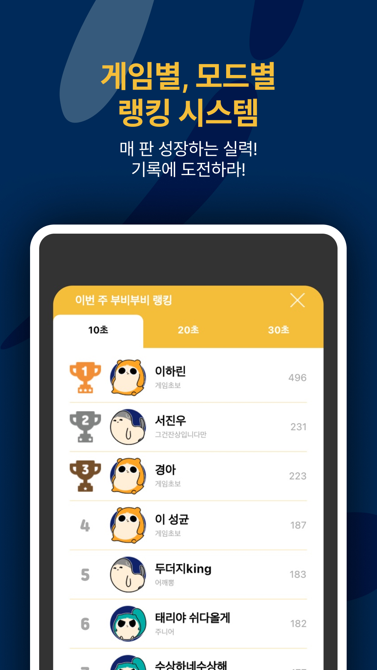 Through the top 100 ranking for each game, it stimulates the competitive power so that all players can see and challenge the scores of the top players.