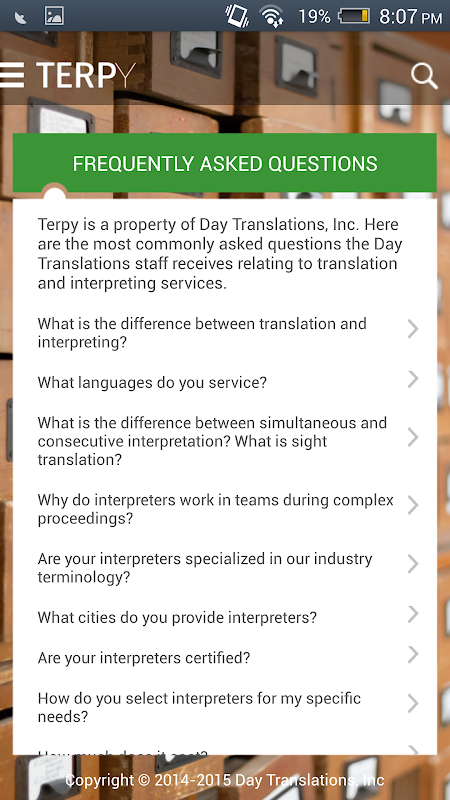 For more information, please visit our website, http://www.terpy.net. For a comprehensive list of translation and interpreting services, please visit Day Translations' website at http://www.daytranslations.com/services