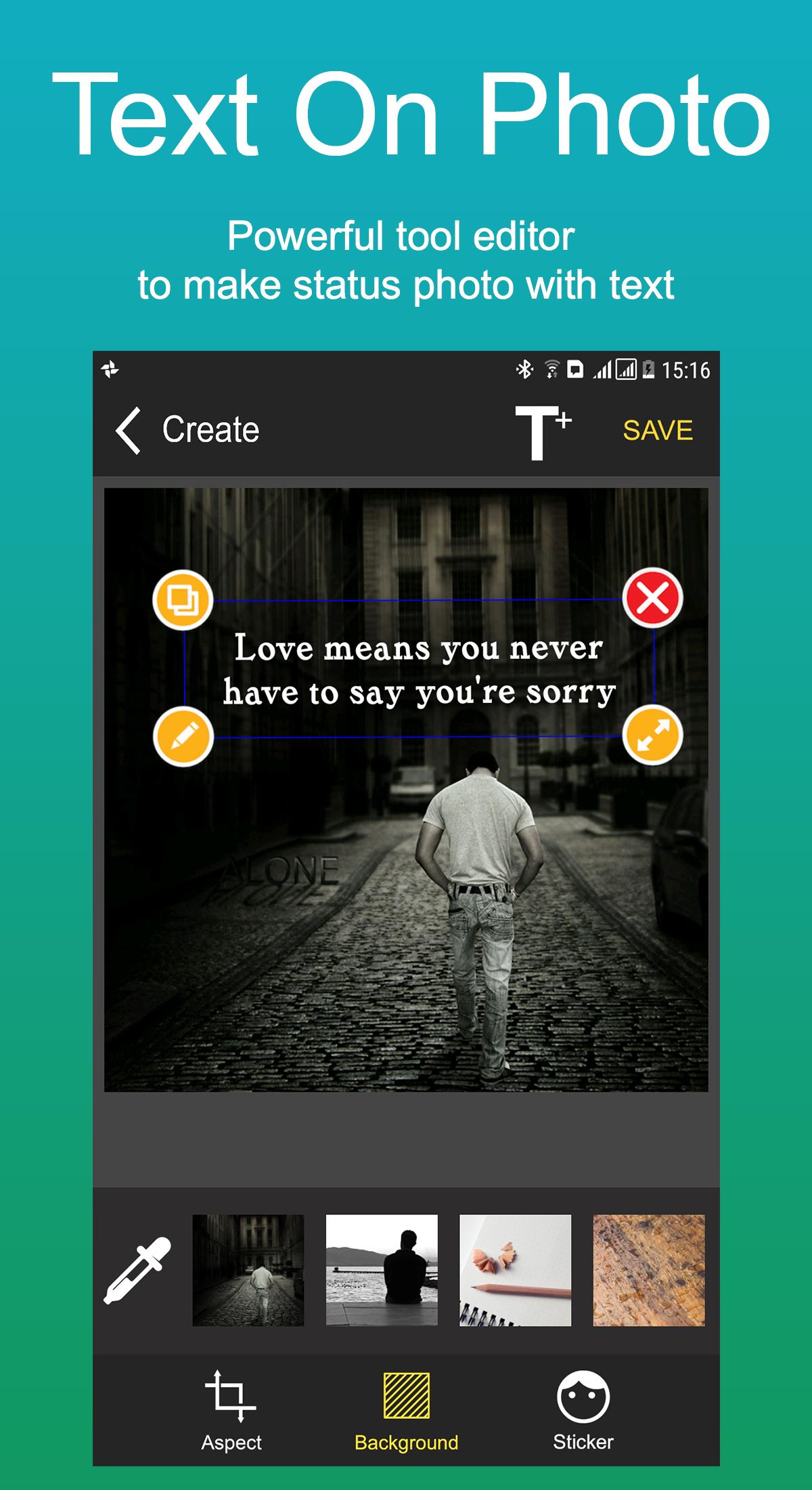 Text on Photos is a simple tool that allow you to add text, quotes, pair signature, status, sticker to pictures, photos.