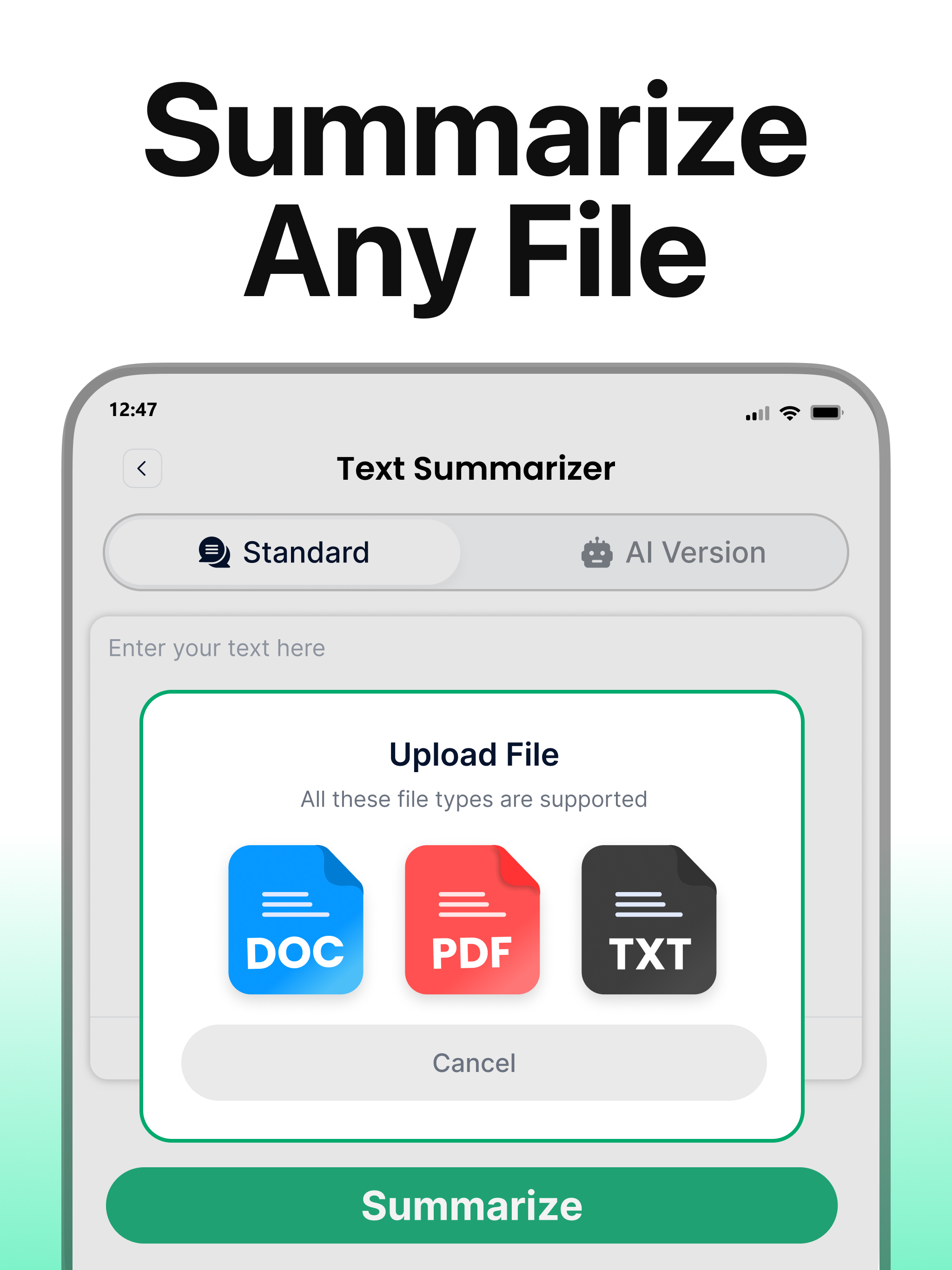 Text Summarizer (Package Name: com.summarisingtool.textsummarizer) is developed by MoEssa Apps and the latest version of Text Summarizer 5.0.1 was updated on March 27, 2026. Text Summarizer is in the category of Productivity. You can check all apps from the developer of Text Summarizer. Currently this app is for free. This app can be downloaded on Android 7.0+ on APKFab or Google Play. All APK/XAPK files on APKFab.com are original and 100% safe with fast download.