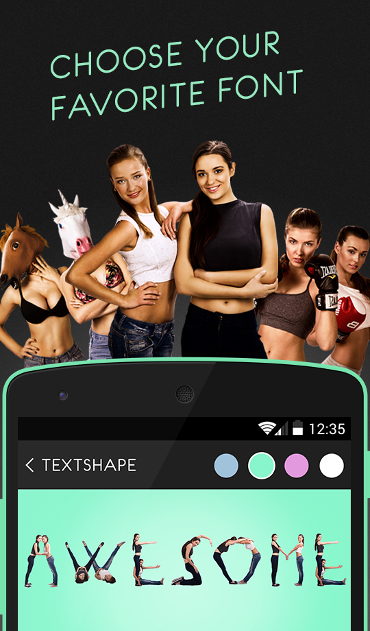Make them remember your message. Textshape gives you six crazy fonts that will satisfy every taste. Simply write your message, choose a font that best fits to what you want to say and you are ready to share your message with your friends on Facebook, WhatsApp, iMessage and more. Hungry for a sneak peak? Our most popular font, The Mysterious Horse Ladies, uses busty women in horse masks as the letters from the alphabet. Sounds awesome? Don’t hesitate and try Textshape for free! - Choice of 6 fonts. Each one is unique! - Direct sharing on Facebook and Twitter - Share 5 times and you can use paid font for free - The ability to export high-resolution images - Available fonts - Amy & Nicole - Dirty Workmen - Amy & Nicole Naughty Edition - Spicy Boxers - Anime - Mysterious Horse Ladies