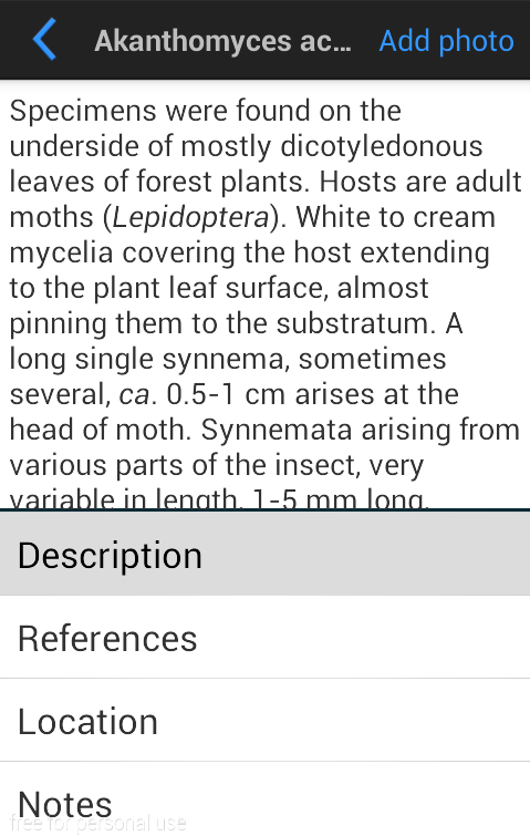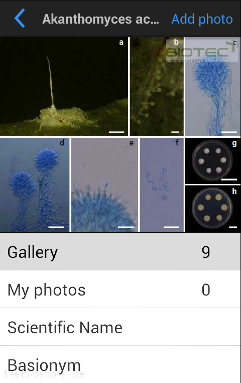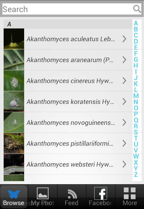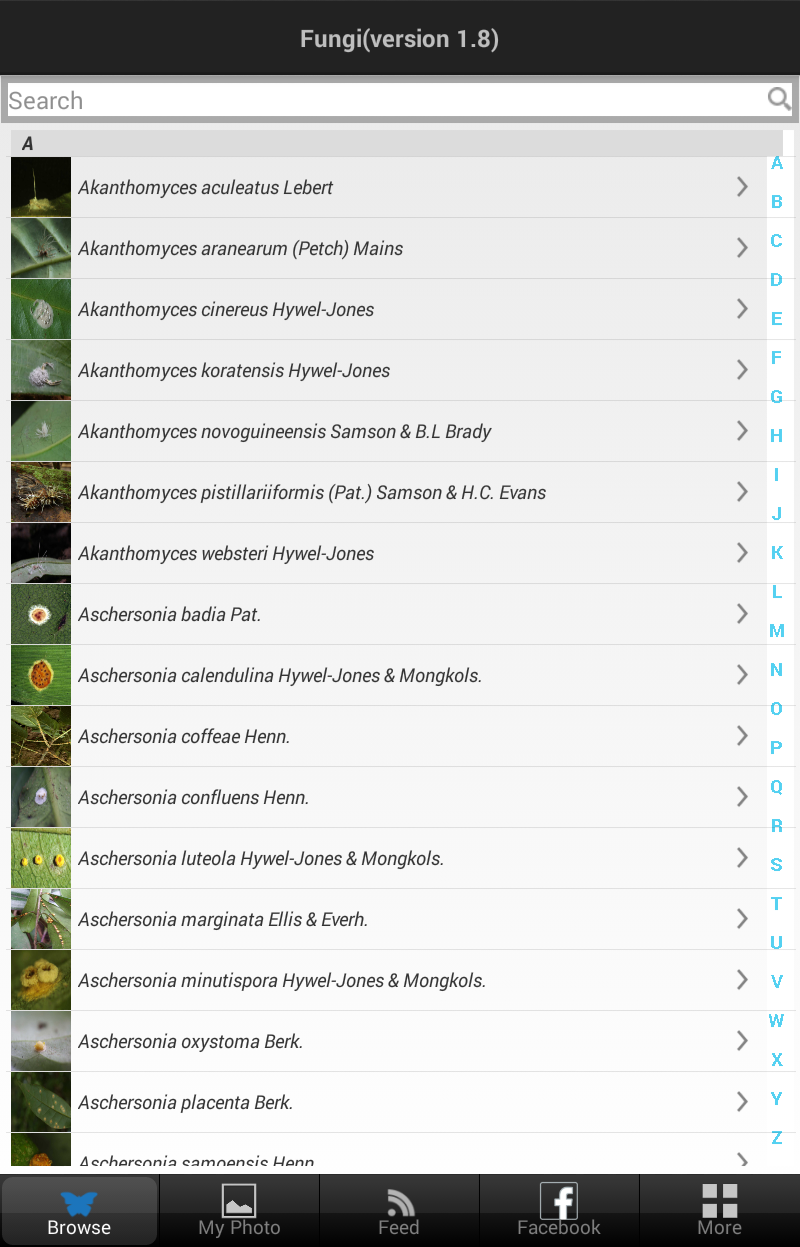 Thai-Fungi is an application tool for learning about the diversity of insect-fungi in Thailand. RSS feeds as well as a built-in camera will allow user to know about the latest new in science as well as take photos of their own specimens.