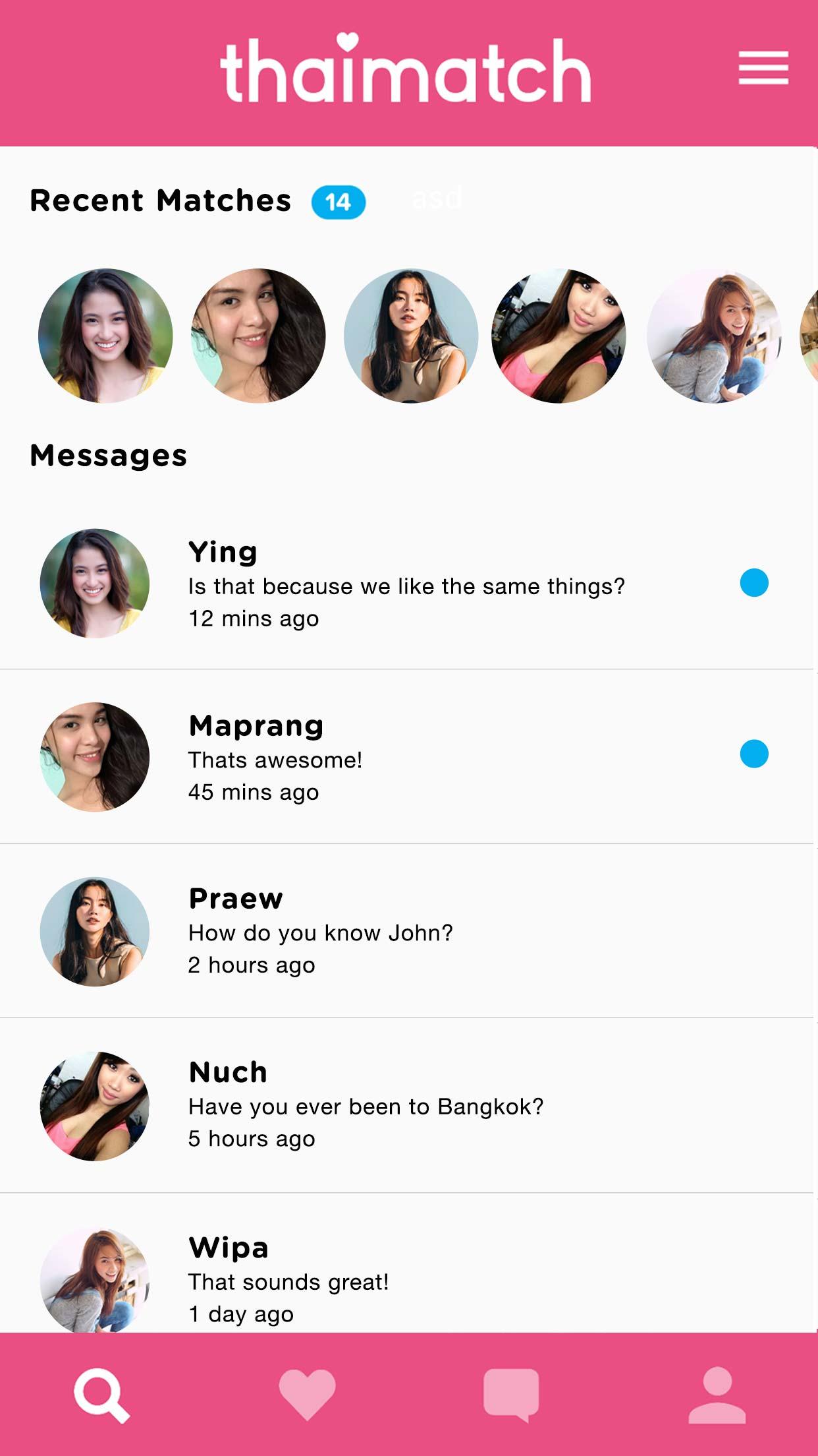 Thai Match is Thailand's fastest growing free dating platform. With over 350.000 verified members, we offer you the best results possible. Whether you’re a local to Thailand, a foreign ex-pat, or a tourist simply wishing to meet someone new, Thai Match is the perfect way to find your ideal match. You can use your existing Thai Match account or sign up now. Our Thai dating services are mostly FREE and consists of the following amazing features: 1. Receive unlimited messages 2. Browse and search through 350.000+ verified members 3. Filter your matches by gender, age, location and more 4. Show interest by liking profiles or send a sticker 5. Exchange photos with members 6. Match with members using the swiping feature 7. Receive instant notifications Signing up is quick and easy and you can log in by using your Facebook account or phone number. Download the app and meet new people in Thailand today!