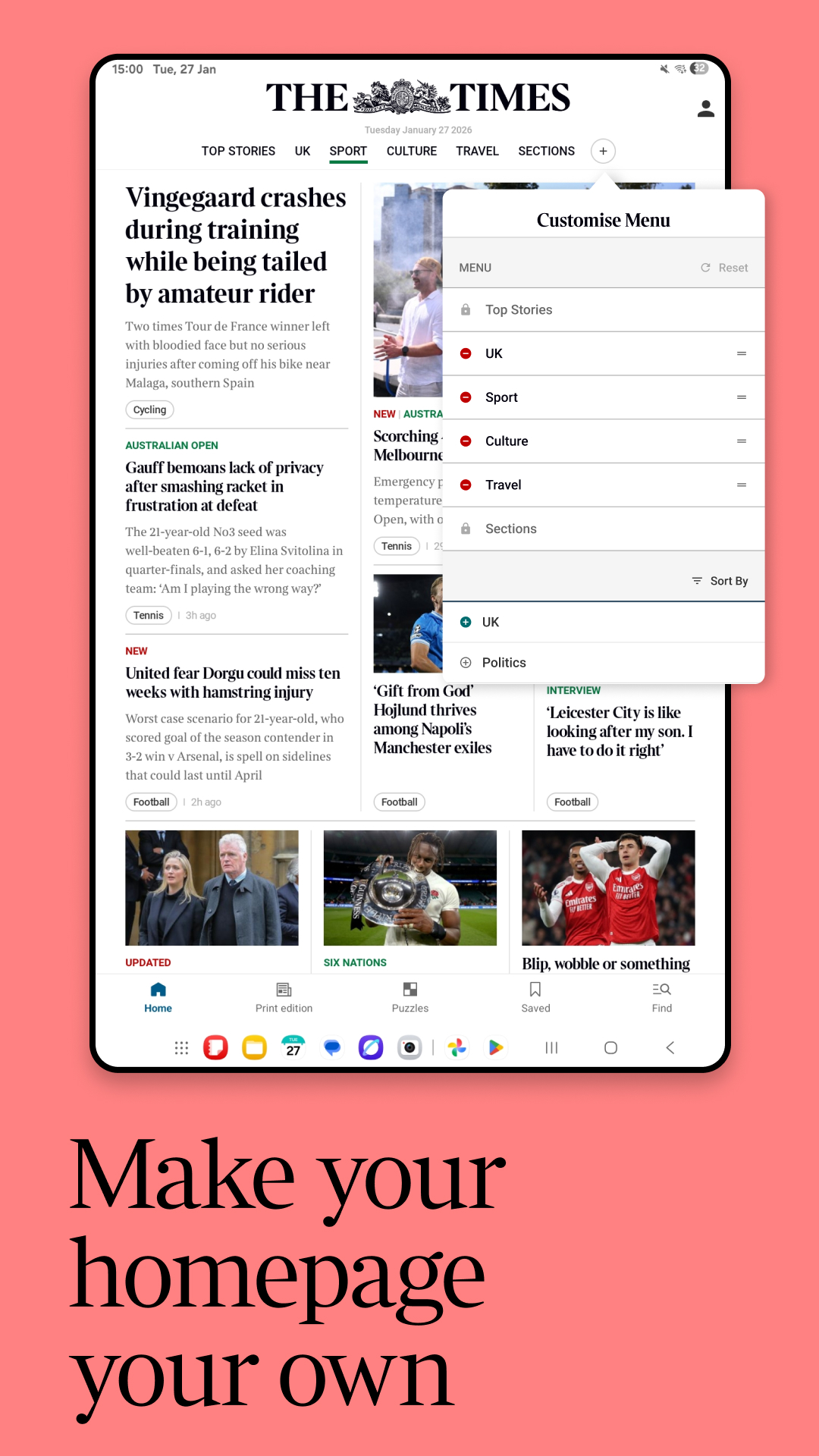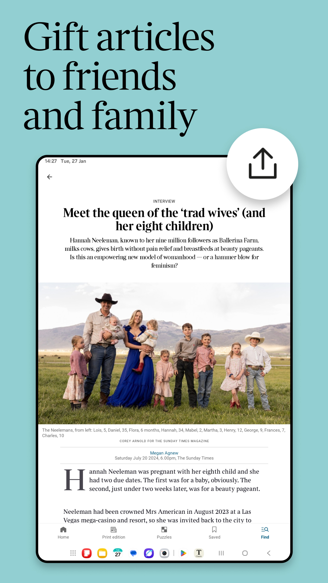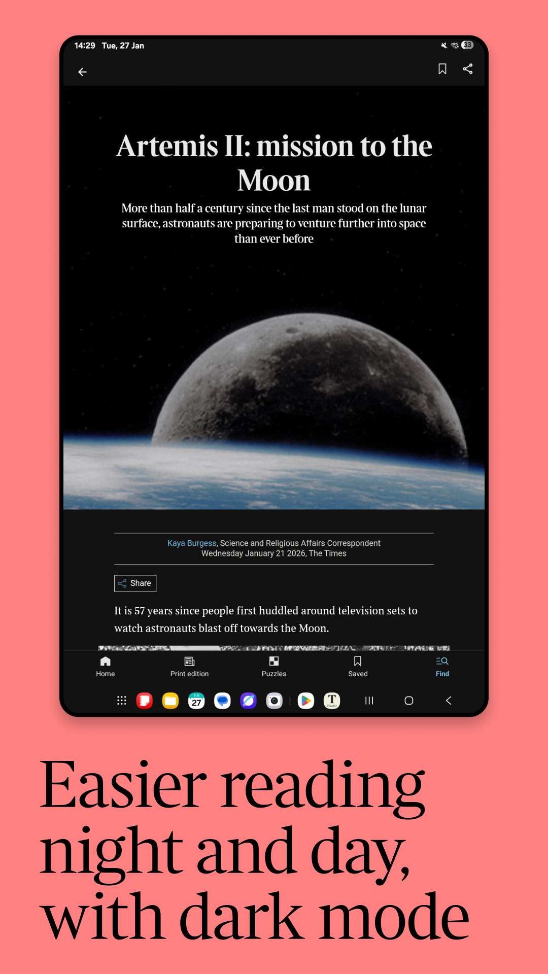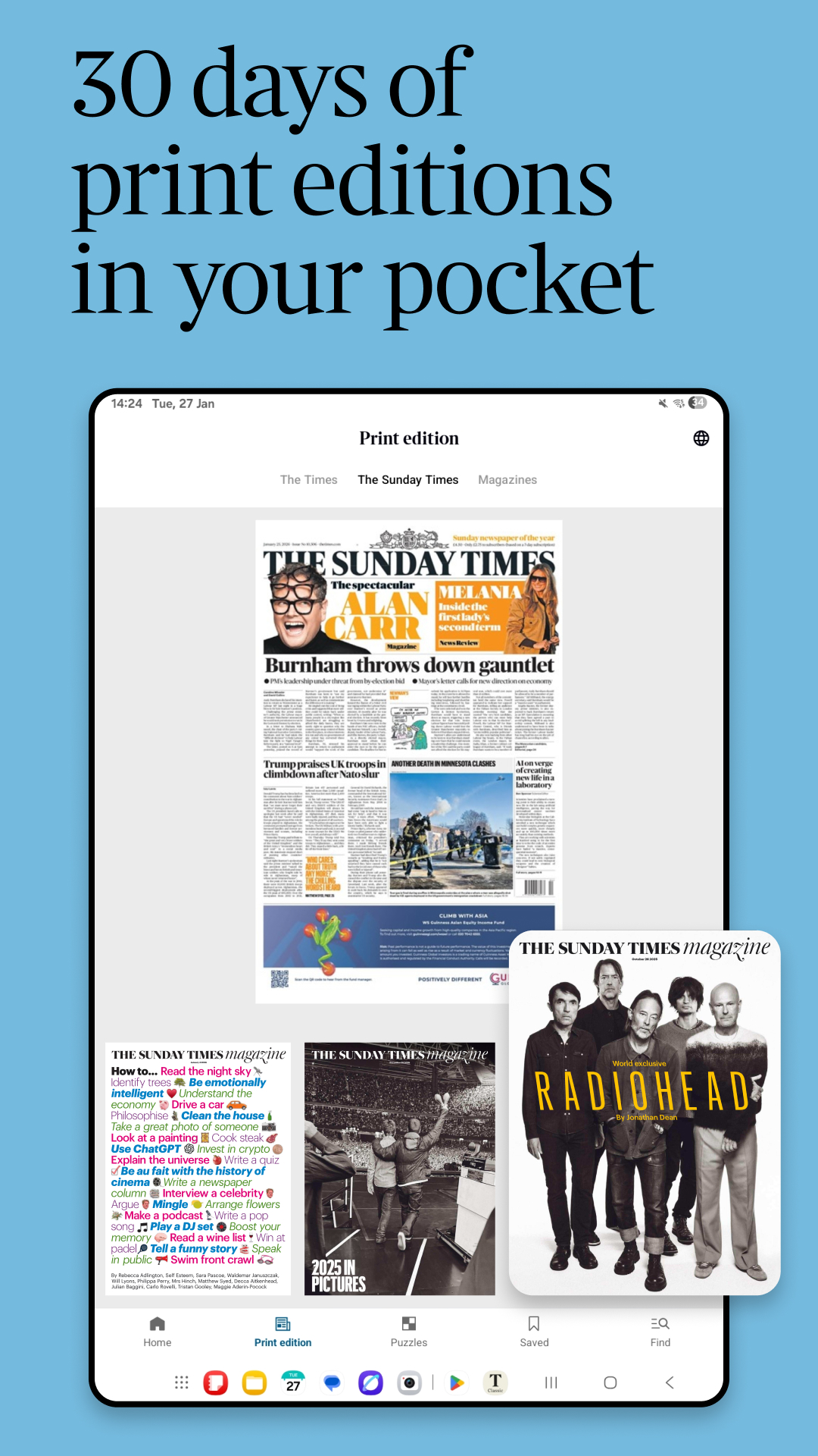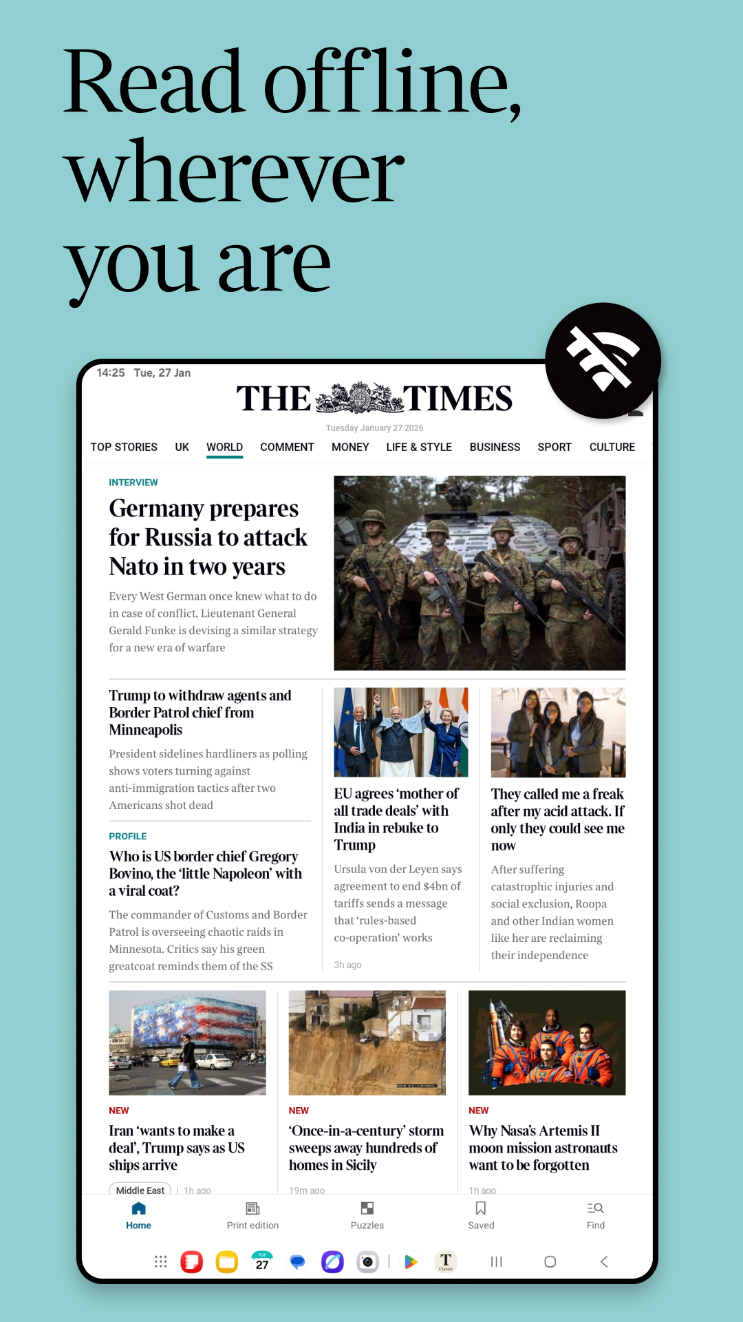 Access The Times news app on a smartphone or tablet with Android 8 or later. Your subscription also includes access via the web.