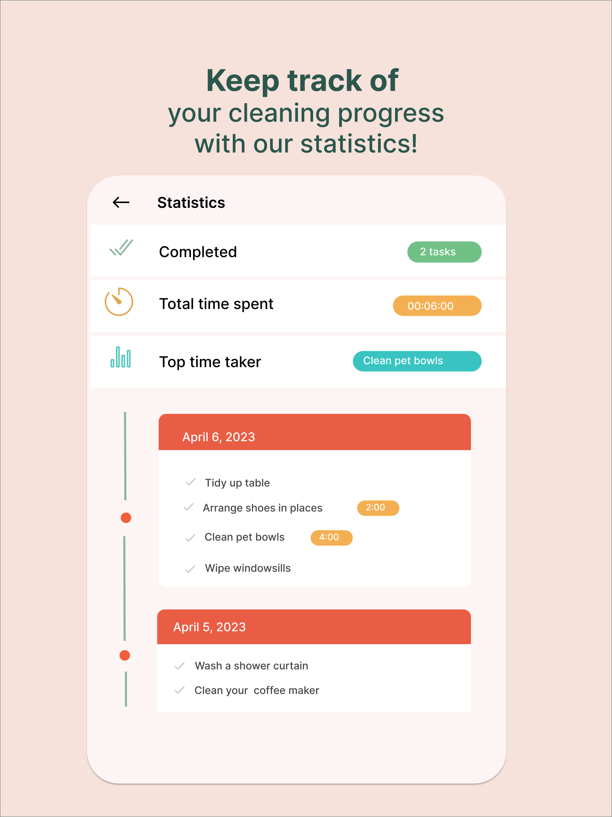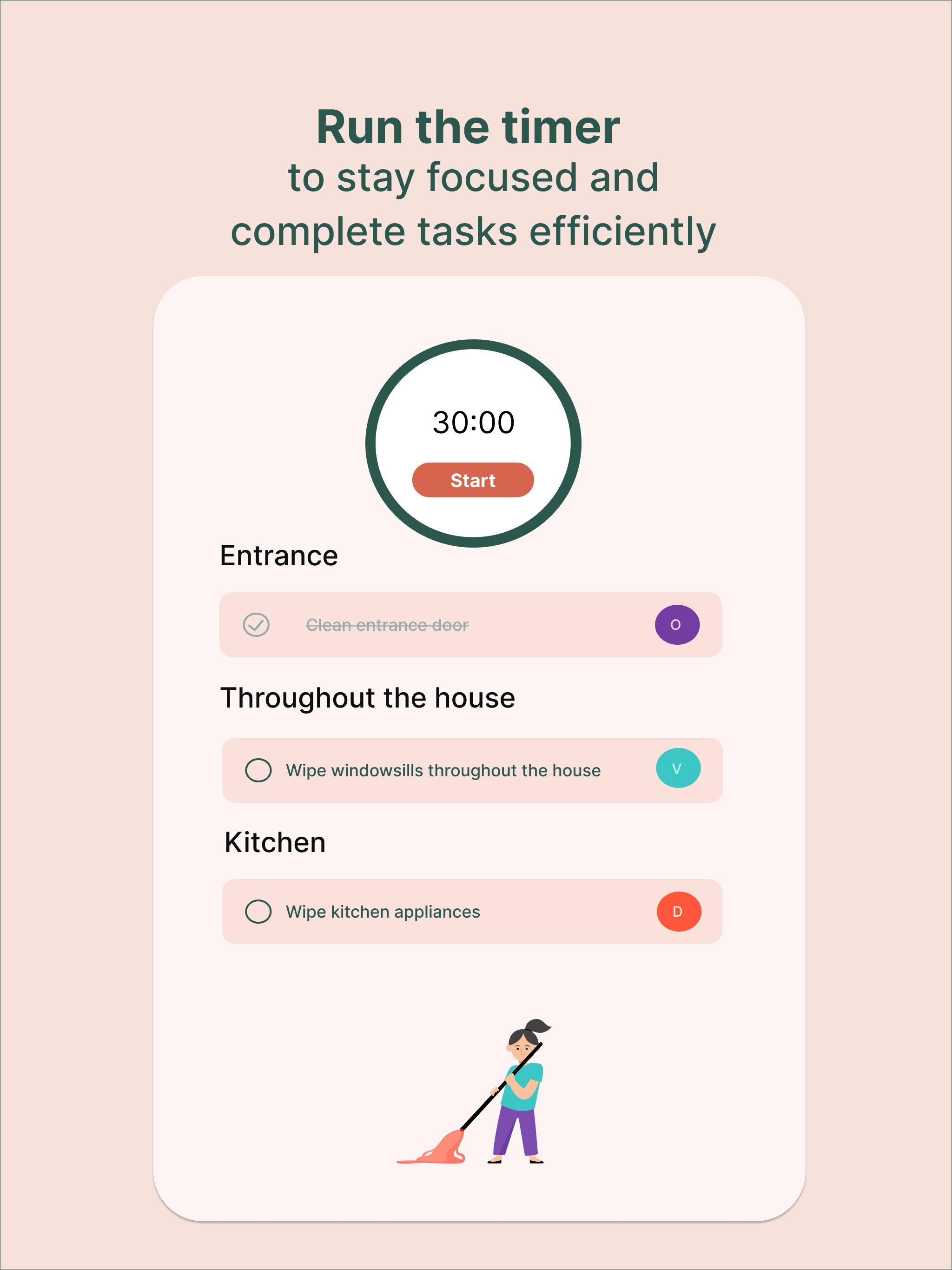 Tidy is a house cleaning schedule, chore tracker, and housekeeping app that helps you keep your home clean without feeling overwhelmed. Create a personalized cleaning checklist, plan daily, weekly, and monthly chores, and stay on top of housework with simple routines for every room. Whether you need a cleaning plan for the kitchen, bathroom, bedroom, or living room, Tidy helps you organize tasks, track completed chores, and build a routine that fits your lifestyle. Create your cleaning routine • Add rooms and areas in a few taps • Get a custom chore list for each room • Schedule recurring chores for daily, weekly, and monthly cleaning • Update your cleaning plan anytime Track chores and progress • Check off tasks as you finish them • See what was cleaned and what needs attention next • Use a clear housework checklist to stay consistent and motivated Share chores with your household • Plan chores with family, roommates, or a partner • Split tasks and stay in sync • Keep everyone on the same cleaning schedule Stay motivated • Try cleaning challenges and decluttering routines • Turn big cleaning jobs into small, manageable tasks • Build better housekeeping habits over time Why people choose Tidy • Cleaning checklist for every room • Chore calendar and recurring task planner • House cleaning schedule for busy households • Custom rooms and custom tasks • Offline access and fast sync • Ad-free experience If you want a simple cleaning app, chore organizer, home cleaning planner, and housekeeping checklist in one place, Tidy helps you stay organized and keep your home tidy every day.