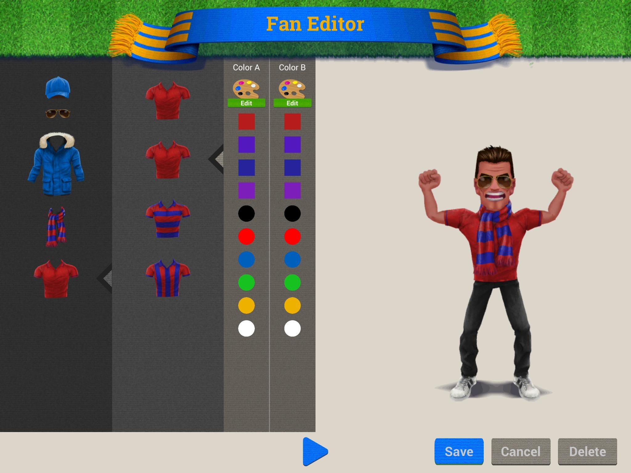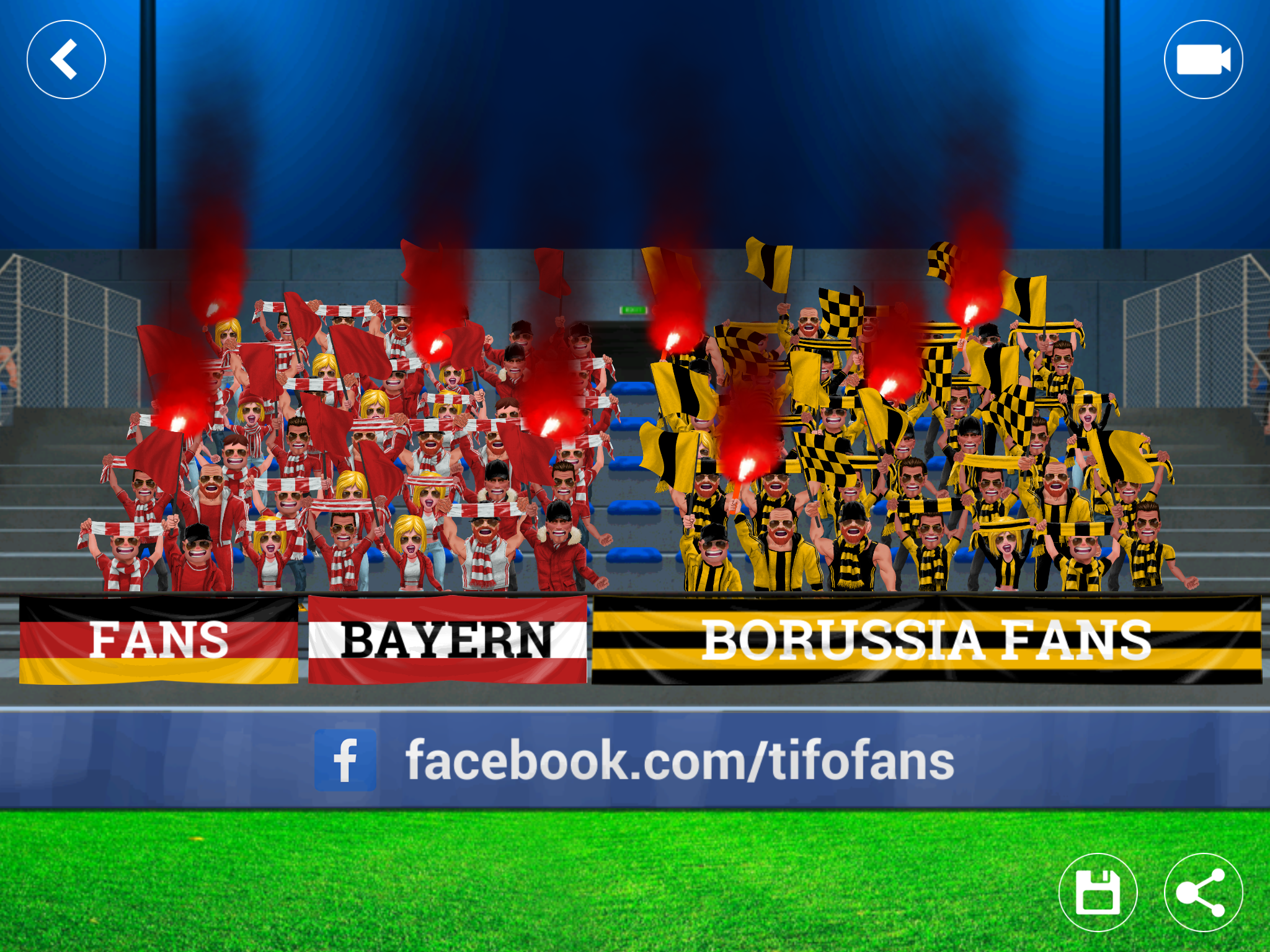 Show your originality to cheer your favourite football club or national team and become the best football fan, supporter or ultra! You can select and edit your fans and dress them with different garments such as shirts, hats, scarves, sunglasses and jackets. You can edit the garments with the colours of your group of fans, supporters or ultras, club or national team! Give your fans the best stand materials such as flares, cards, scarves and flags! There are different models and you can edit them with your favourite team’s colours! Create your banners with the name and colours of your group of fans, supporters or ultras, or your favourite football team! You can also cheer your favourite players such as Cristiano Ronaldo, Messi or Neymar by dedicating a banner to them! You can also share the banner through the game! When you have your football stand ready, press play and enjoy the best animation that a fan, supporter or ultra can offer to his favourite team! Support your club in the best football competitions! Create the best tifos for the Champions League, the best mosaics for the Copa Libertadores, the best choreographies for the Europa League and compete to be the best fan! Get ready for the World Cup, the Euro Cup, the Copa America or the Africa Cup of Nations and create the best mosaic, choreography or tifo to support your national team! Prove you’re the best fan, supporter or ultra! Download this great app now and show all your friends what you can do for your favourite team! Football without fans, supporters and ultras is nothing!