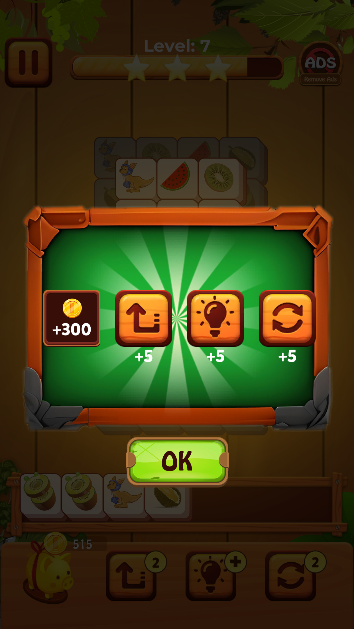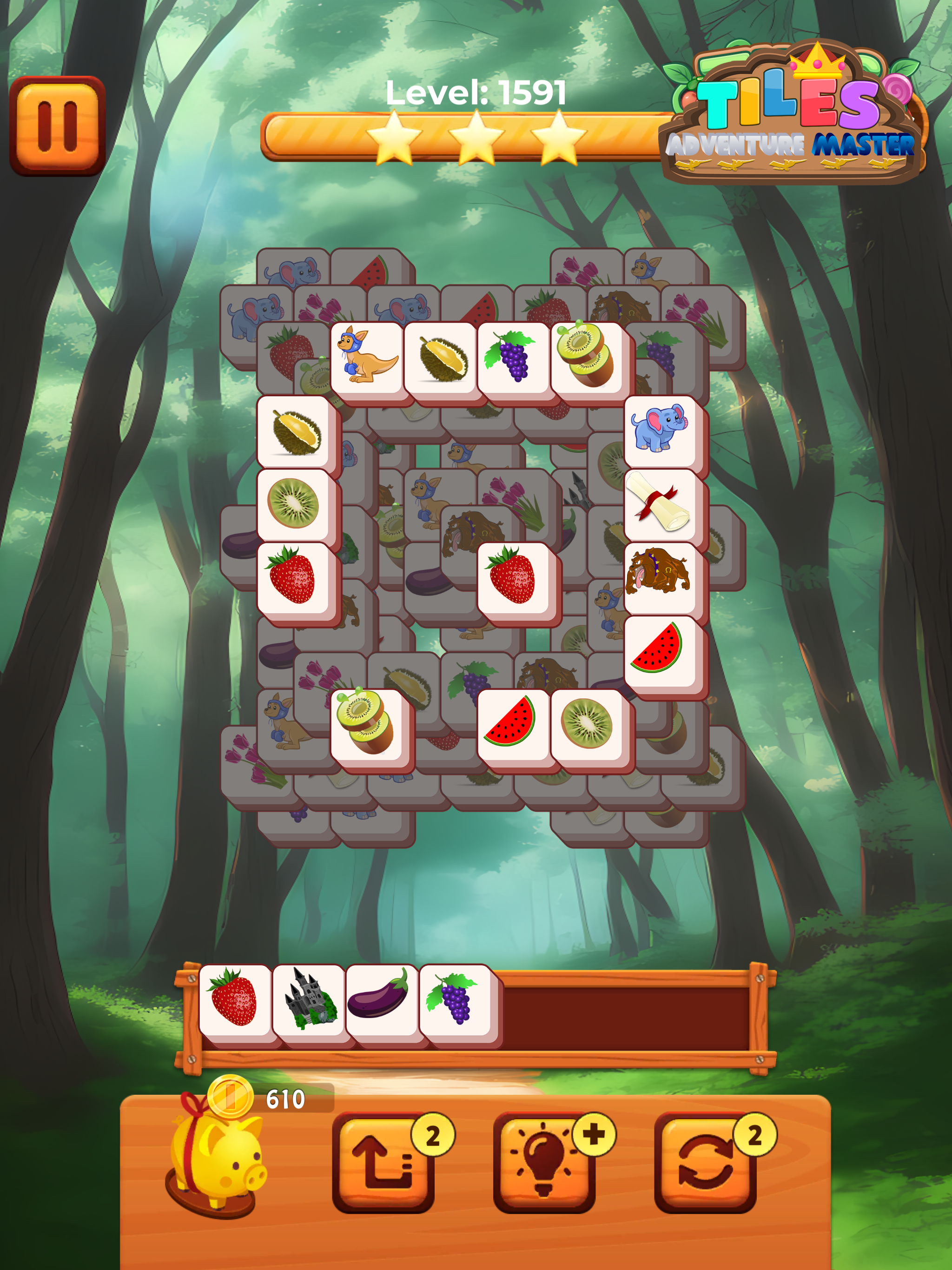 Not like classic triple tile & mahjong games, Tiles Adventure Master not only connect your brain to logical thinking but also is a free & fun matching puzzle game which is easy for everyone to play. Tiles Adventure Master ( known by other names as Tile Fun - Tile Master 3D, Tile Fun: Master Mahjong Games, Tile Match Triple, Tile Craft in some countries ) is a new brand tile connect majong matching game! If you love ordinary mahjong or majong tile master 3d or classic match 3 games, it may be alike but not the same. You have to match 3 same tile craft blocks to solve challenging puzzles. It’s easy at the beginning and as you progress you will face a lot challenging levels. 💡💡💡How to play the triple tile craft puzzle games: ⚡️Tap tiles to put them in the matching box. Three same tiles will be collected. Collect all the tile craft blocks as fast as possible. ⚡️ Collect 3 identical tile craft blocks to match them and remove them from the puzzle. ⚡️ When all tile craft blocks are matched, you win!💪 ⚡️ If there are more than 7 tiles placed in the matching box, the game is over.😭 ⚡️If you want to get a high score or earn more stars, you should be crazy and tap to match tiles quickly. 💰💰💰Hot Features Of the majong matching games: ⭐️ Over 2,000 levels, every level is well-designed. Non-stop fun! ⭐️ Various styles of cards: fruits, animals,...Full of the world 🌍 elements! ⭐️ Rich wallpapers, you can change the styles day by day! ⭐️ Rich gifts are free! ⭐️ Play anywhere, anytime. No need to worry about Internet. Have no time limit! ⭐️Thousands of layouts and useful tips 💡, undo , and powerful boosters ! ⭐️Available to play on mobile and tablet devices! ⭐️Casual and easy gameplay, open your mind! ⭐️Connect all fruits or other type of cards and eliminate them! ⭐️Lucky turntable, turn out good luck and get more rewards🎁 ⭐️Challenge interesting levels, collect more stars ⭐️, unlock more world maps 🗺 and enjoy your brain time! Our majong match puzzle game is easy at the beginning and as you progress some levels might be hard. Majong Matching game always need good logic and strategy to solve puzzles. Once you become a match master, you will enjoy the exciting game. Tile Master Fun will improve your problem-solving skills. Have a relax while sharpening your brain. The Tile Match Triple game is suitable for all ages. Challenge your mind and solve the puzzles, and then you will find them easy and exciting! Be the master of triple tile craft! Come experience it!👍 💡💡💡Learn more about the origin mahjong game: Mahjong or mah-jongg is a tile-based game that was developed in the 19th century in China and has spread throughout the world since the early 20th century. It is commonly played by four players (with some three-player variations found in parts of China, Japan, South Korea and Southeast Asia). It and its regional variants are widely played throughout East and Southeast Asia and have also become popular in Western countries. Try our free solitaire puzzle games and Play OFFLINE/FREE in any time, anywhere either Phone or tablet! Download now to play this free puzzle app on Android and enjoy one of the most relaxing and addictive games! Fun to do when you're bored and looking for mindless fun
