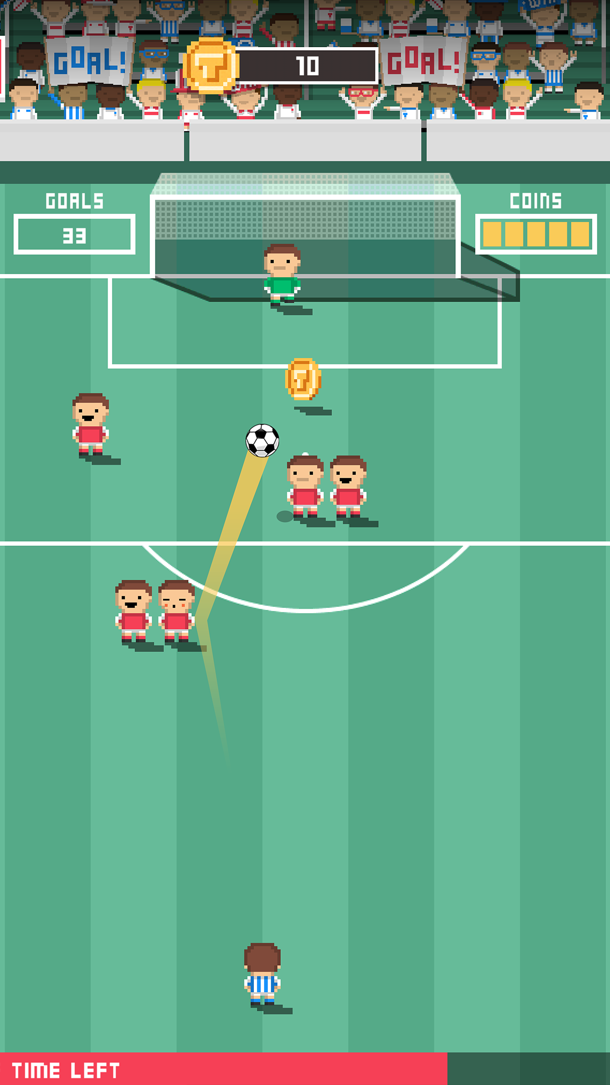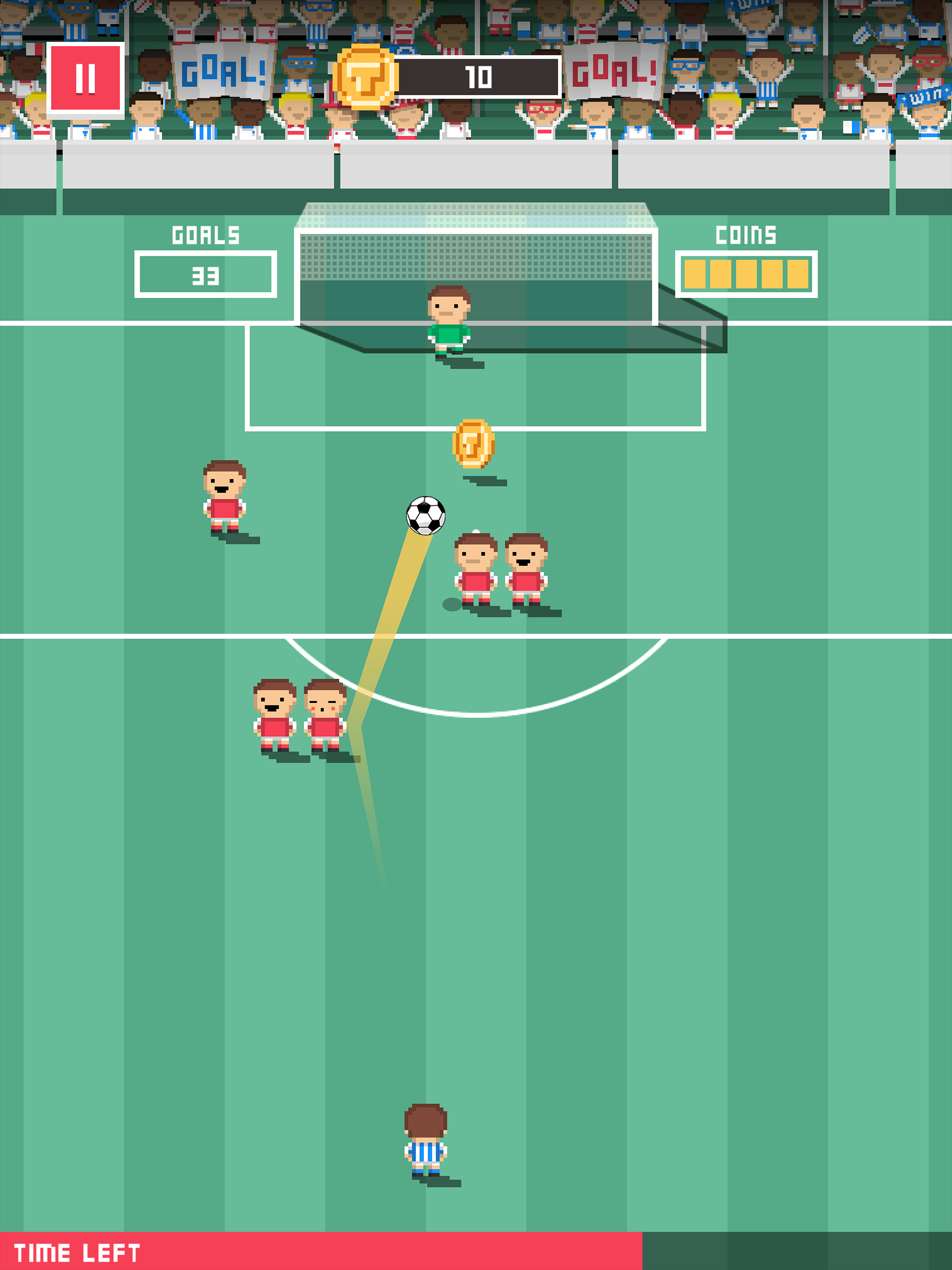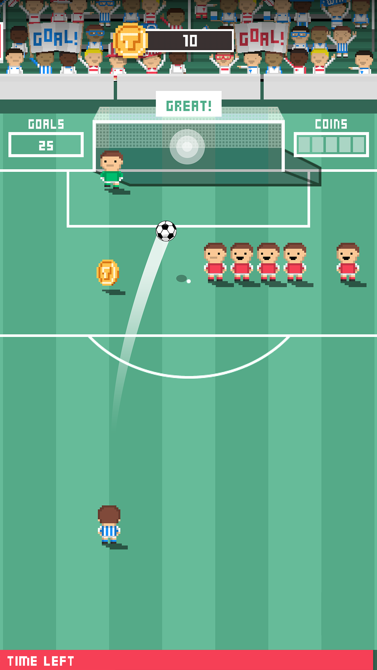 + Swipe your finger up the screen to kick the ball