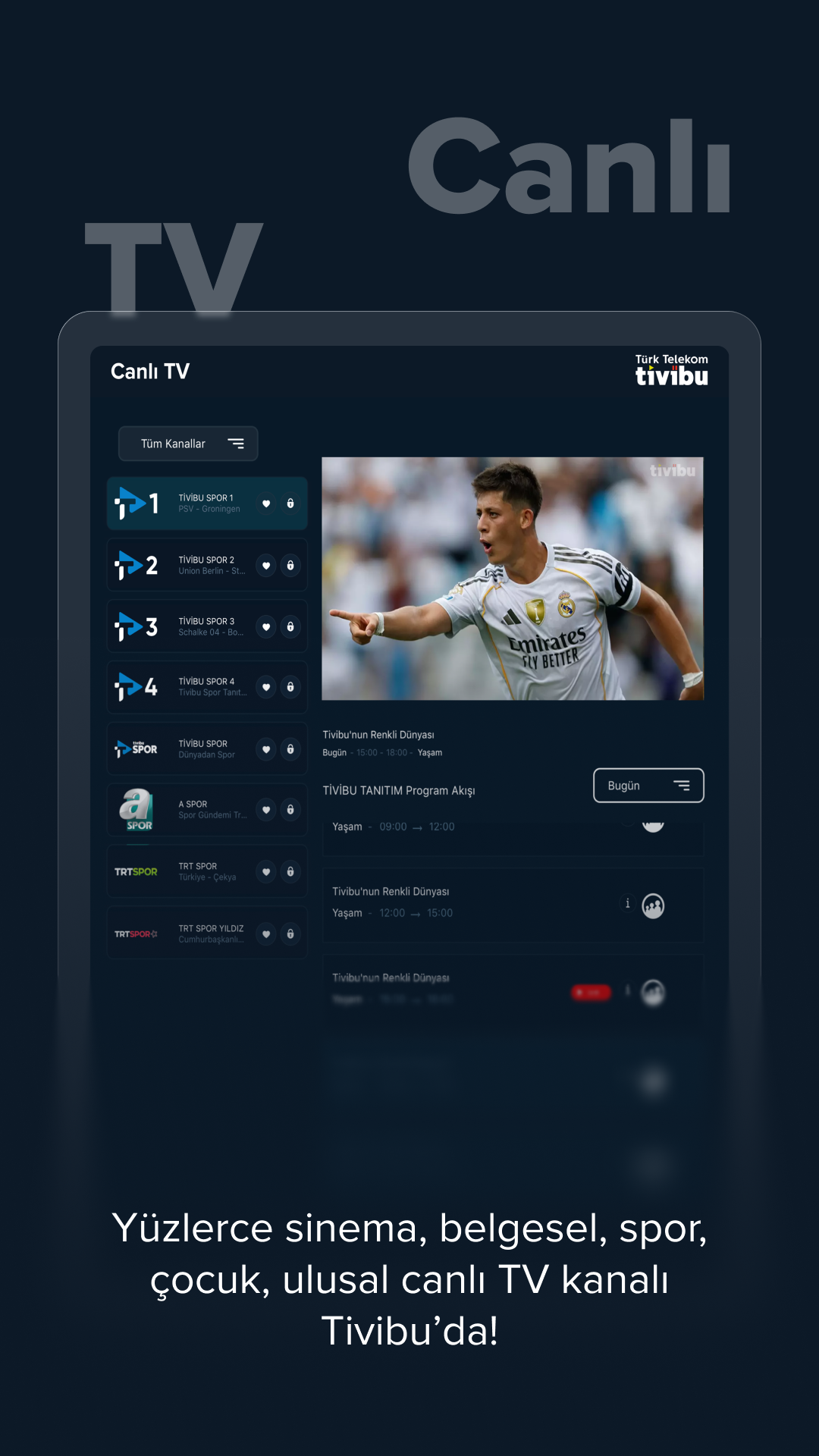 o Tivibu Spor channels: Tivibu Spor, Tivibu Spor 1, Tivibu Spor 2, Tivibu Spor 3, Tivibu Spor 4