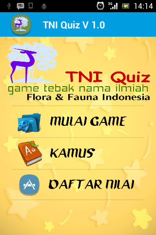 TNI Quiz Merupakan aplikasi ensiklopedia flora dan fauna indonesia yang dilengkapi dengan fitur permainan berupa tebak nama ilmiah dari flora dan fauna.