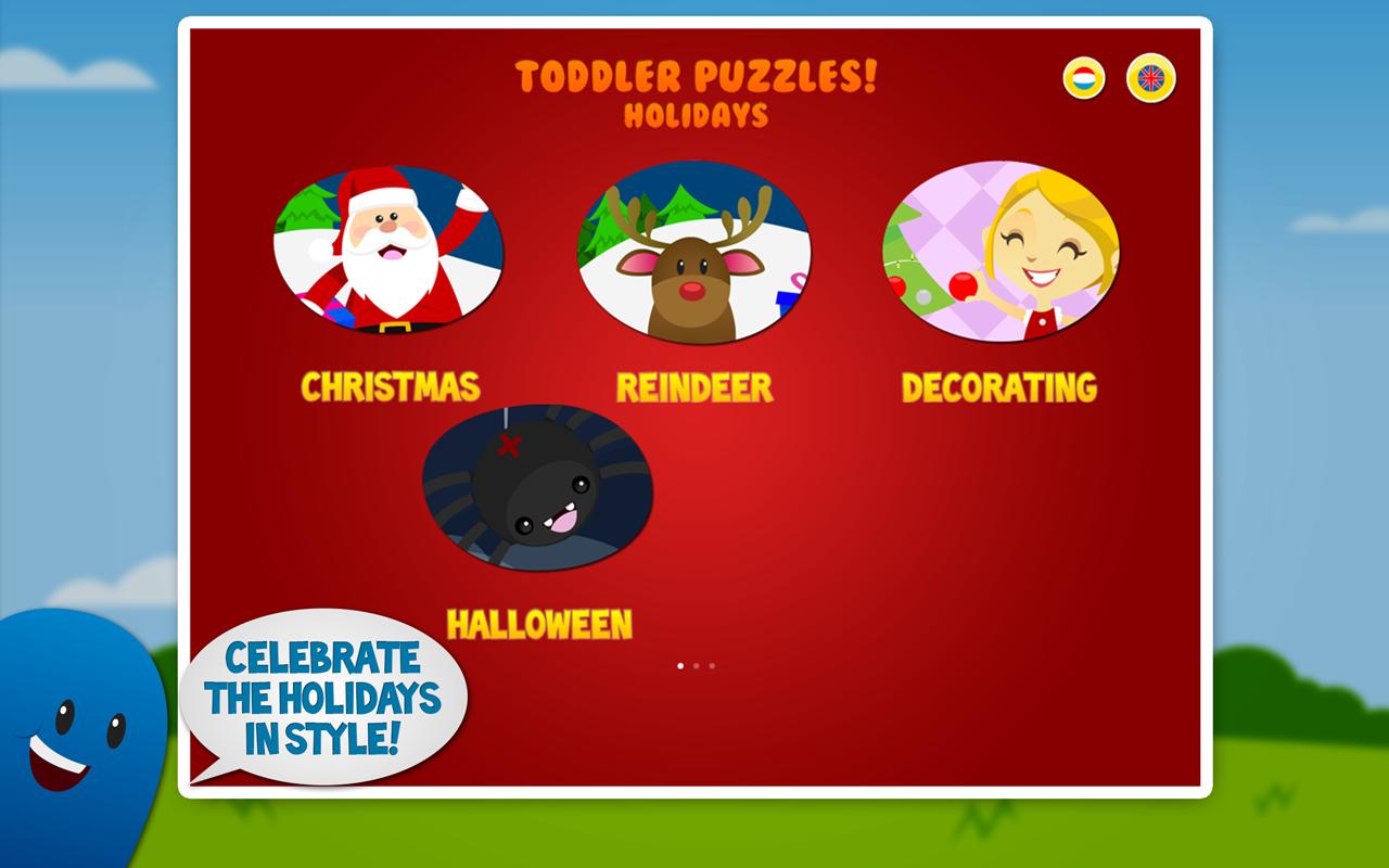 Fun puzzles for toddlers! All puzzles are related a Season or Holiday. With 4 beautiful puzzles it is the best puzzle app expansion to Toddler Puzzles! All levels are available for free! We will add 5 more puzzles soon! ✔ Haloween puzzle ✔ Christmas puzzle ✔ Reindeer puzzle ✔ Decorating puzzle ✔ New year's eve puzzle ✔ Valentine's Day puzzle ✔ Easter puzzle Your toddlers will never loose any pieces of the puzzles!
