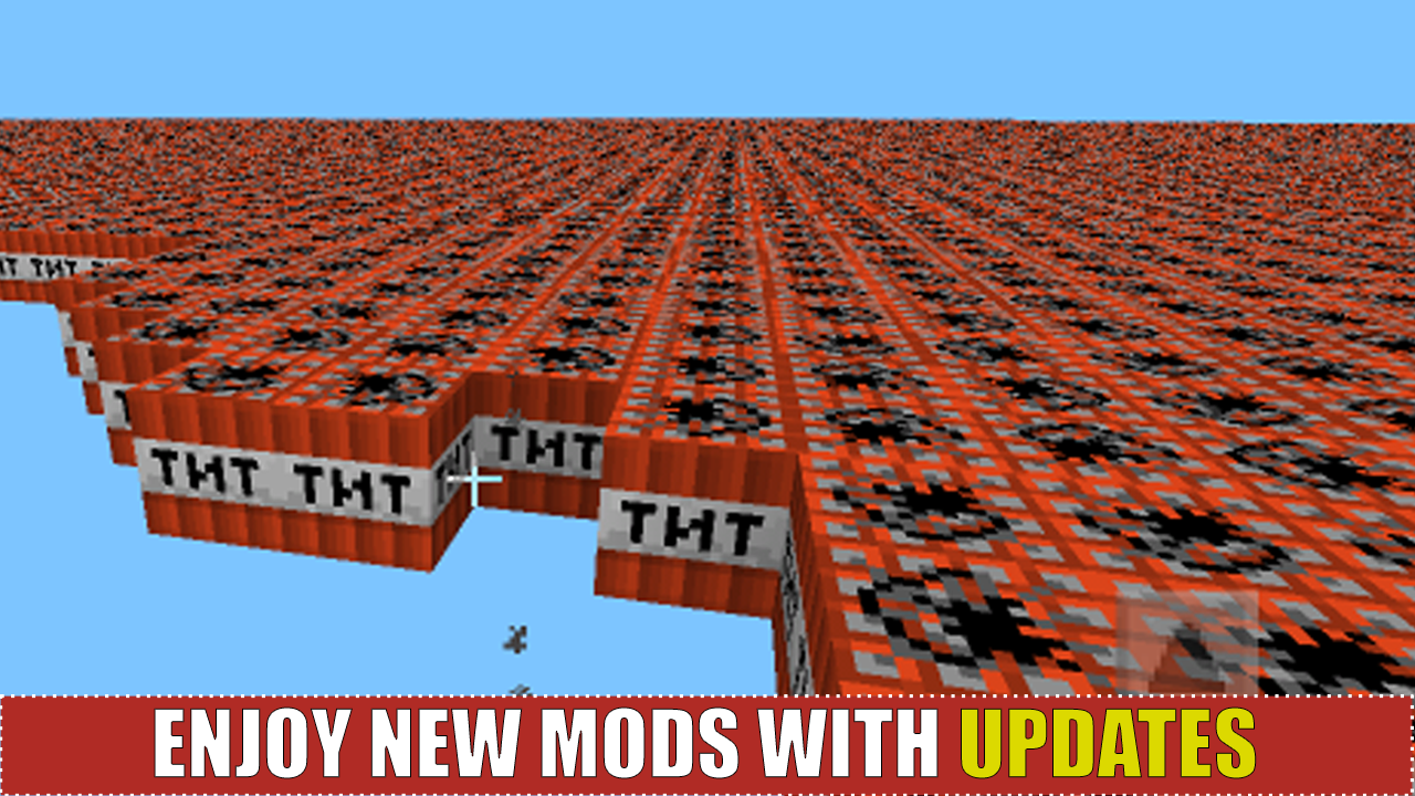 100% FREE! What is mcpe tnt mod? This is a modification (or shortly - mod) that can change Minecraft PE gameplay by adding new mcpe maps, guns, weapons, armors, bombs, c4, grenades, dynamite and too much TNT. Change Minecraft world with new explosive stuff! Too Much TNT is a very cool TNT Mod that adds 35+ new bombing and explosive stuff that can bomb and destroy all around! Warning: Minecraft tnt mod adds a lot of mcpe dynamite, c 4, bombs and other TNT, so when you explode too much tnt the game may lag on very old devises. But it worth it! Just imagine that you can damage, blow up and detonate blocks, buildings, houses, animals, mobs of minecraft pocket edition universe with Dynamite and make nonstop Explosions. Key features: * No payments or fees. Too much tnt mcpe is free to download and use * Supports old and new versions of Minecraft Pocket Edition and ALL Android tablets and smartphones with Android 4 and newer. * Get regular updates with new MCPE maps, mods and addons Download now! Don't forget to check out our new apps for Minecraft Pocket Edition: Guns and Weapons add-ons, armor mod, creatures and zoo mod, parkour maps, starwars map, Christmas skins and mods, ships and furniture mods, lucky block, cars and prison escape for mcpe, naruto skins, skywars mod, Modern Houses and Furniture, Hide-and-Seek mods. Minecraft Pocket Edition Must Be Installed to Play Too much TNT mod for MCPE. Too much TNT mod for MCPEis not affiliated in any way with Mojang AB. The Minecraft Name, the Minecraft Brand and the Minecraft Assets are all property of Mojang AB or their respectful owner. All rights reserved. In accordance with http://account.mojang.com/documents/brand_guidelines