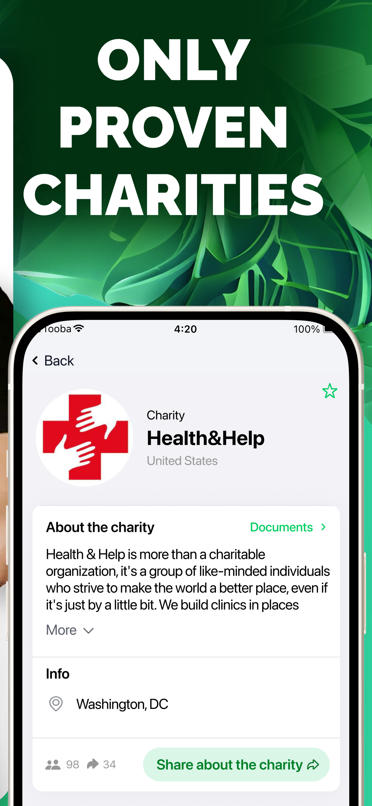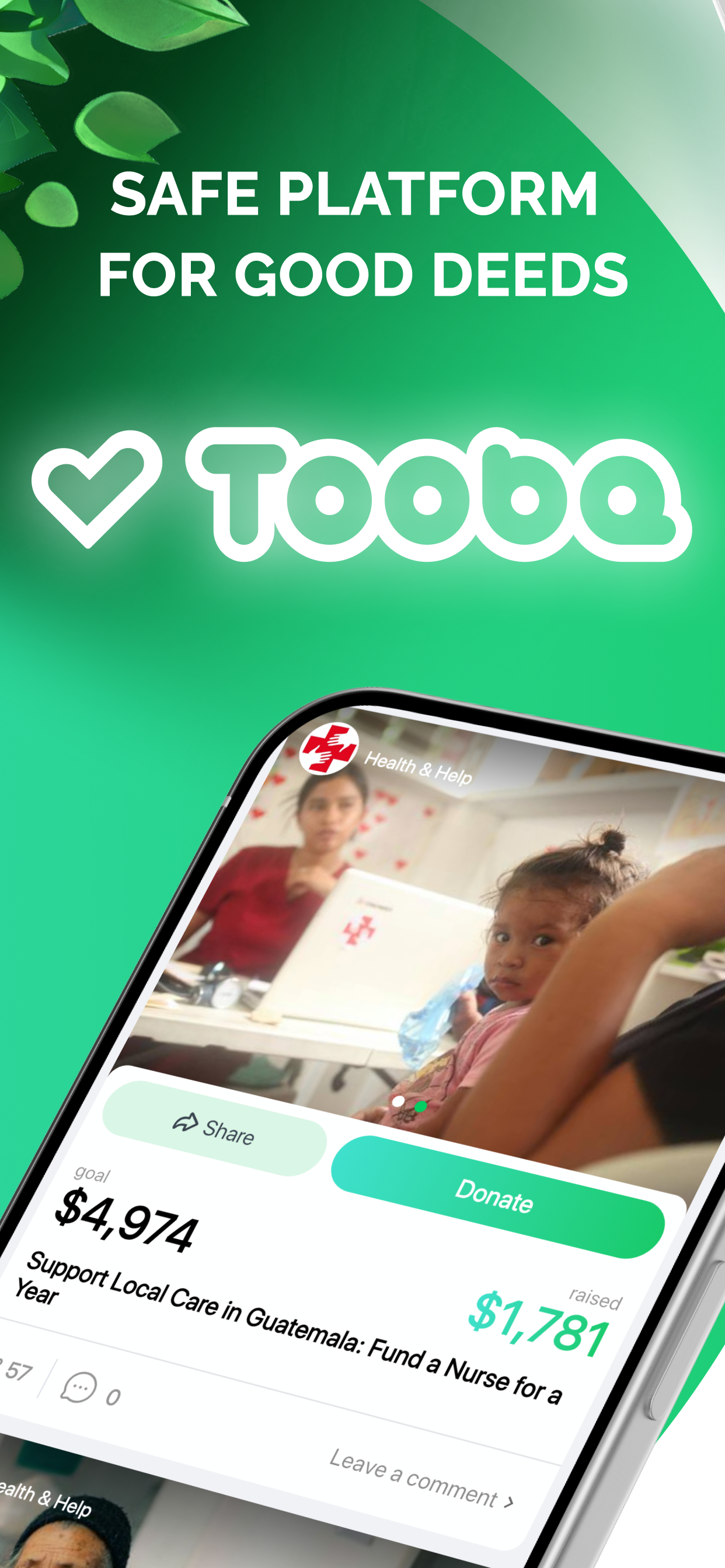 Tooba: Goodness at Your Fingertips with Your Mobile Charity Platform Discover Tooba — a platform where goodness meets hope. Our app transforms the donation process into a simple and enjoyable action. Make your first donation with just three clicks and feel how easy and important it is to share goodness. Verified Charitable Funds. Impostors and fraud have led to an "epidemic" of skepticism towards charitable projects in society. And from this universal distrust, people in dire life situations suffer. We understand how crucial honesty and trust are in the world of charity. We combat fraud in the charity sector by offering a platform where every charitable fund undergoes strict scrutiny. We guarantee that your goodness reaches those who need it, ensuring transparency with every donation. Fast and Easy Donations. Choosing a charitable fund and making a donation has never been so easy. Make a donation with just three clicks. Tooba's simple and convenient interface helps you quickly choose the right charitable project and make a donation without any hassle. Choose from a multitude of categories and spheres: help children, adults, seniors, animals; donate to the underprivileged, as well as environmental and infrastructure issues. You can give hope to those who need it with just a few clicks. With Tooba, every click you make brings goodness into the world. Transparency at Every Stage. Thanks to daily data updates and video reports, you will always be informed about the effectiveness of your donations. On the Tuba platform, transparency goes hand in hand with kindness, allowing you to see the real impact of your donations. Every closed collection is accompanied by a report, and many of them are showcased in our social networks. Community of Kind Hearts. Join us and become a part of the Tooba community, which strives to bring goodness to the world. Share your stories, participate in crowdfunding projects, and together with Tooda, bring kind deeds to life. Goodness on Your Smartphone. Tooba makes the donation process accessible and straightforward. Your smartphone becomes an instrument of assistance and kindness, transforming each donation into a chance to give hope. Tooba’s Mission: Together We Create Goodness. We believe that together we can bring significant goodness into the world. With every donation, with every contribution through our platform, we are a step closer to creating a world full of kindness and mutual aid. Join Tooba and discover how simple and meaningful it is to share goodness. Start your journey of kindness with a reliable and transparent platform for donations. Download Tooba — Your Reliable Companion in the World of Charity, and take the first step towards creating abundant goodness in the world with us!
