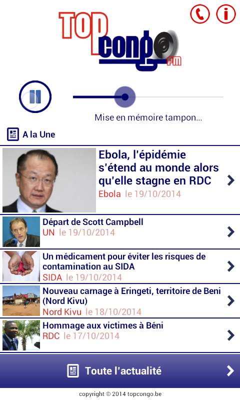 Top Congo FM, the useful frequency! First radio information in the DRC. Find our emissions now with this new mobile application.