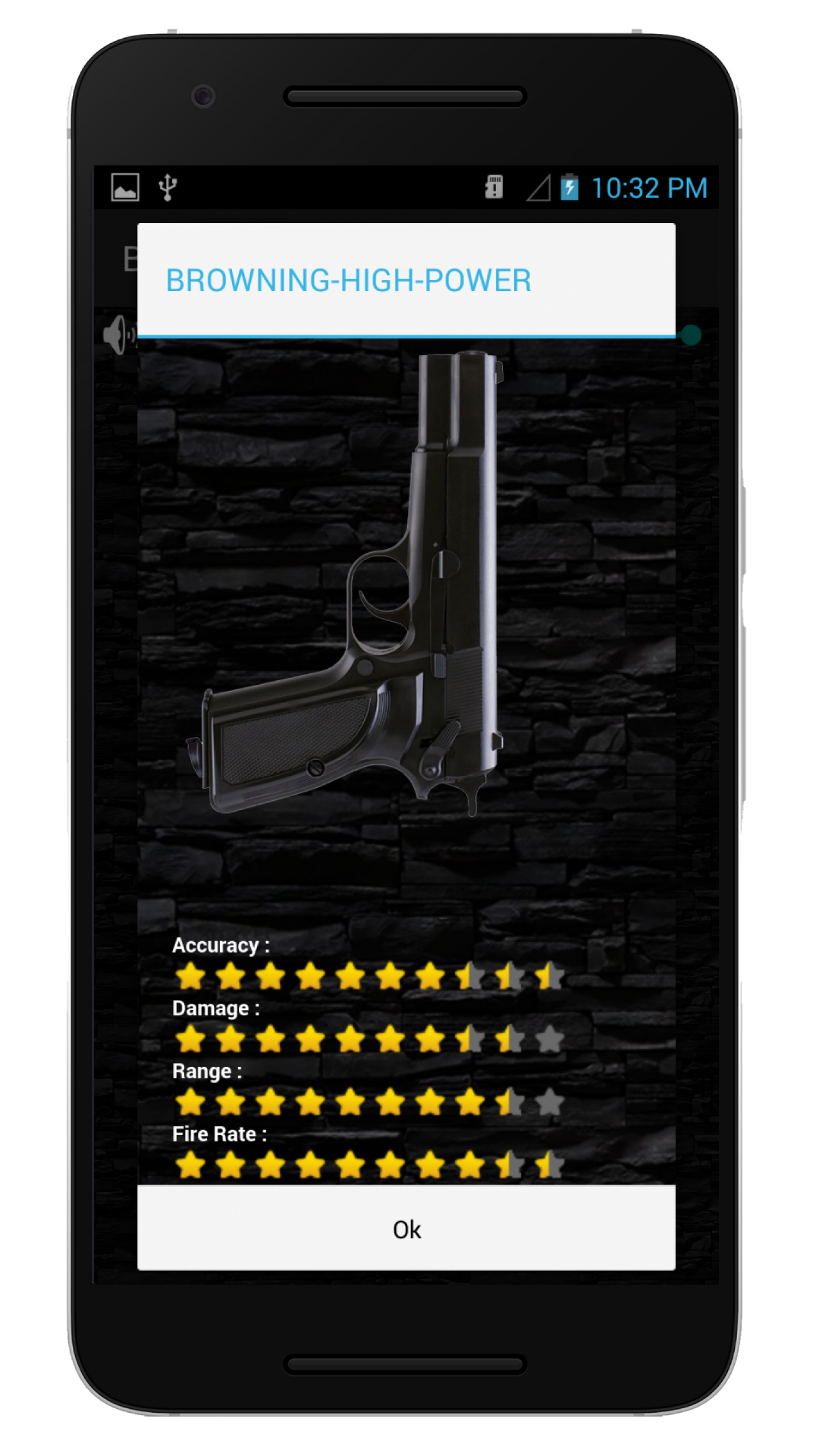 • Rating provides details in stars like caliber, muzzle velocity, effective top gun range, nearby shooting range, rate of fire, accuracy and damages.