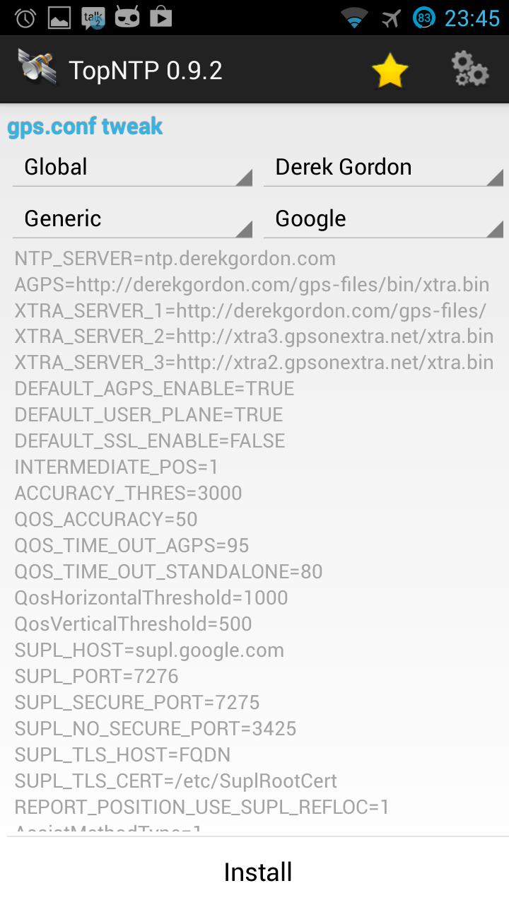 This app does installs a customized gps.conf file for your GPS. It has several different profiles to choose from. We recommend to use the default Google profile but it is up to you. Appart from the profiles you can customize the one chosen.