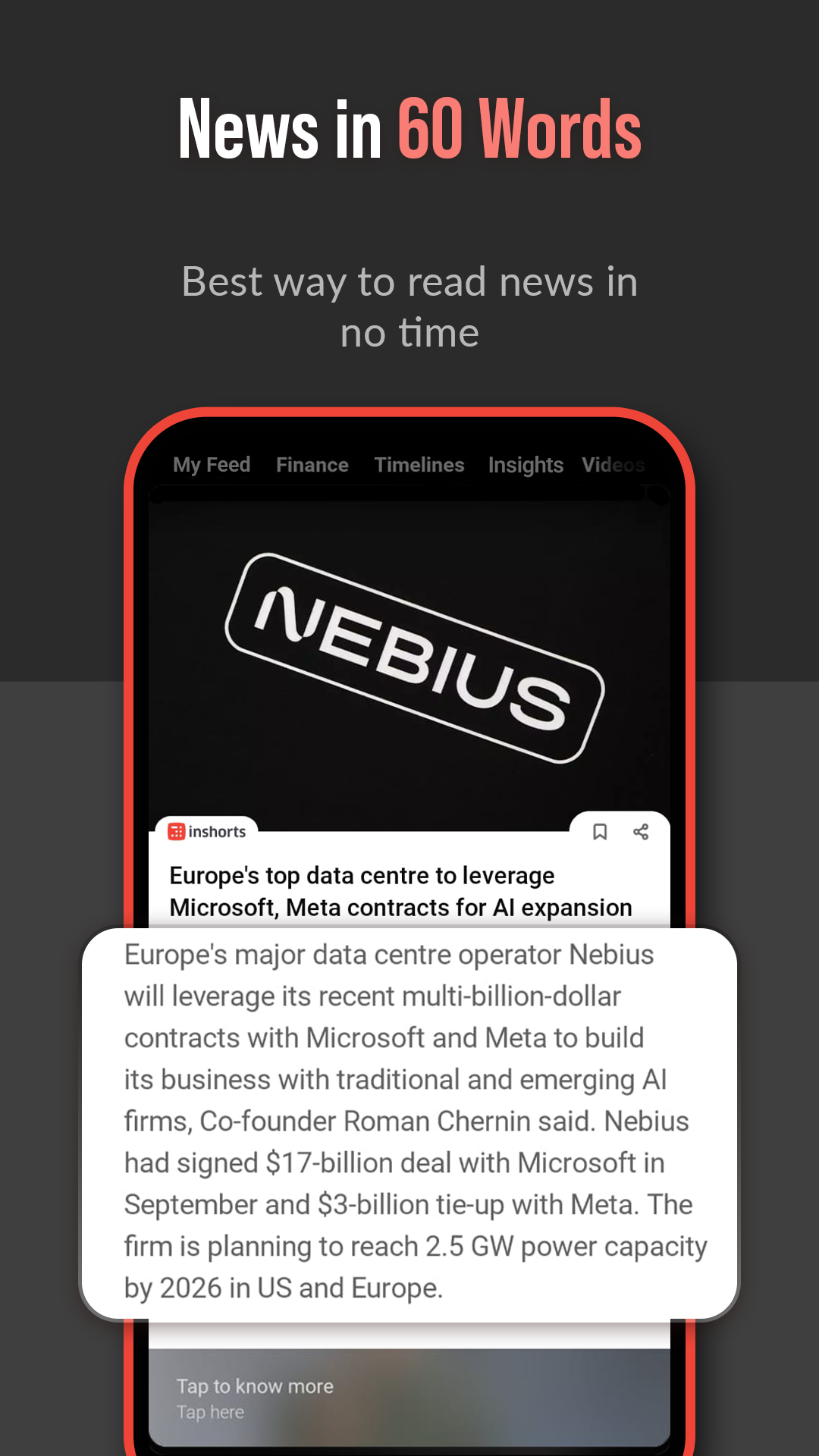 Inshorts keeps you up-to-date with the latest news at home and abroad with dozens of words.
