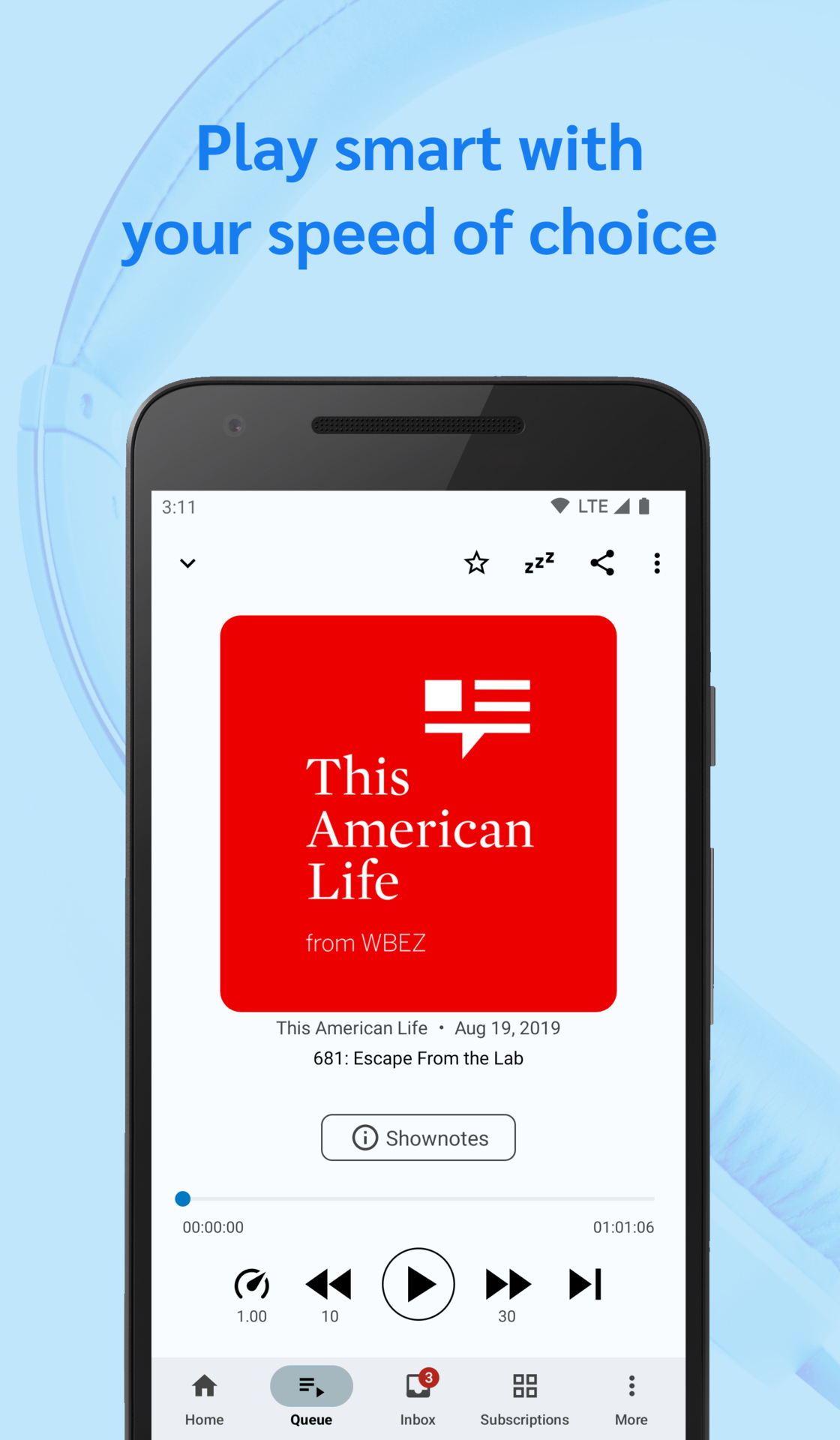 A free and open source podcastmanager for Android, allowing you to subscribe to podcasts (via iTunes database & OPML), automatically download episodes using powerful mechanisms and listen to them the way you like (speed, balance adjustments, etc).