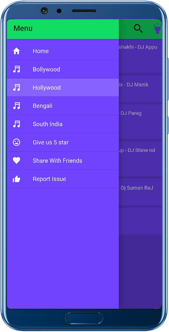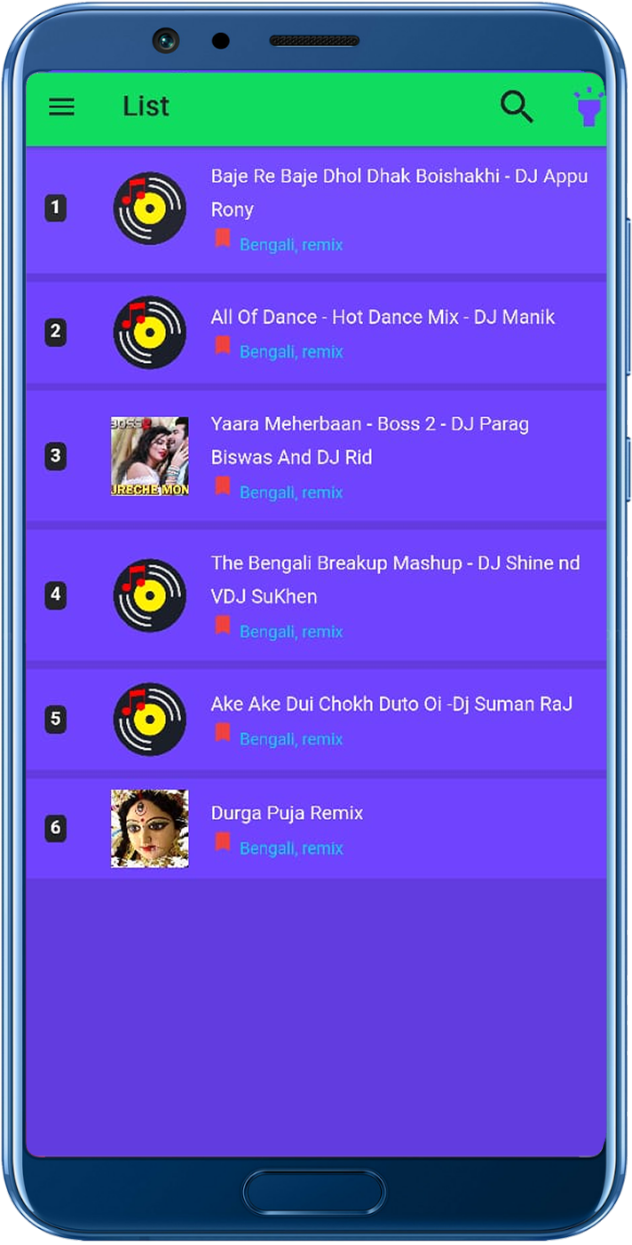 TORCH - With Dj Music With is a music application for a house party with flashlight blink and colorful lights coming from the phone screen.There is available flashlight on-off functionality on every screen. You can use this application as torchlight and also as a disco party with Dj remix mashup songs/music.There are available almost all categories of remix and nonstop Dj songs like Bollywood (Hindi), Hollywood (English),
