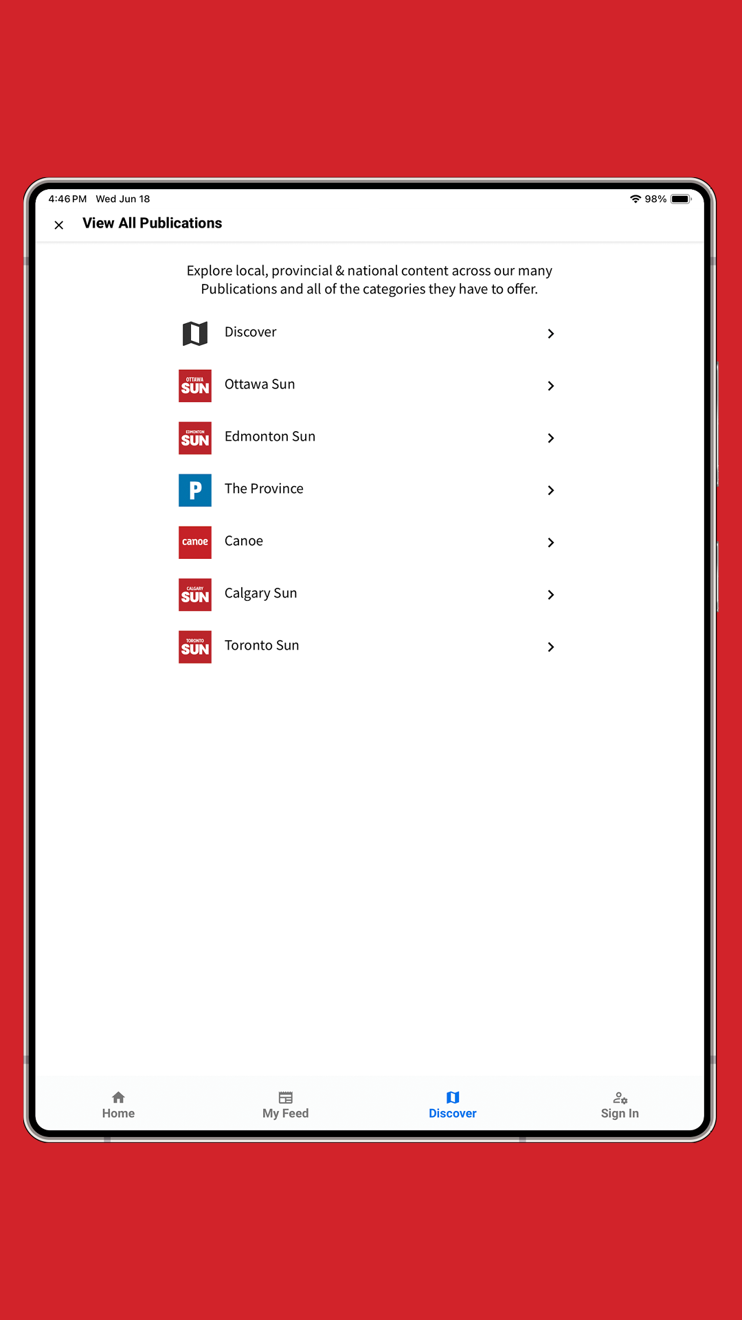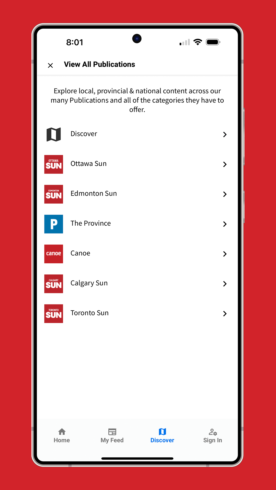 • Use the Discover tab to explore trending stories from Postmedia newsrooms across Canada