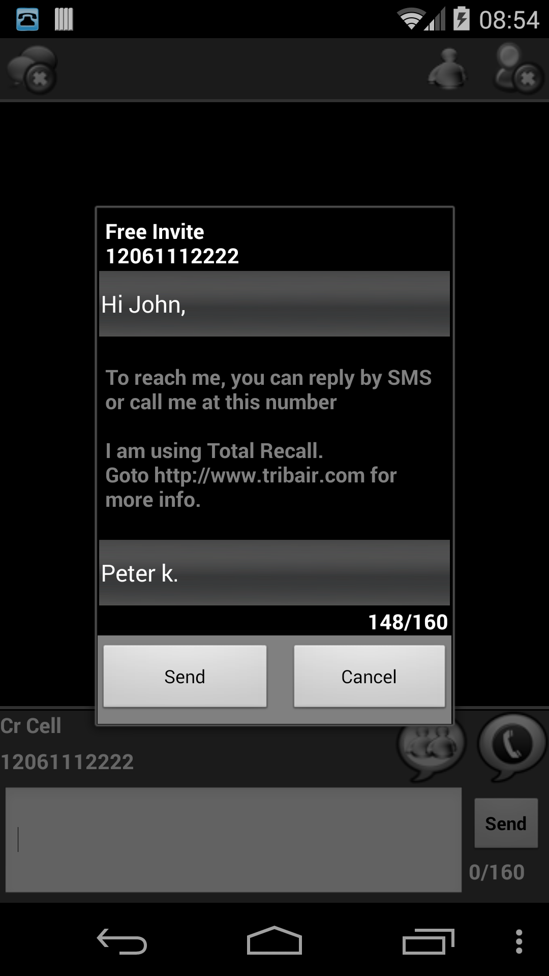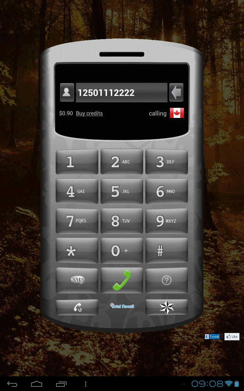 Total Recall is used to make Internet phone calls as well as to send text messages to any phone number. Each time you contact someone, a Recall phone number will be displayed so they can contact you back by calling or by sending an SMS. We try to give your contact a Recall number in their country so that they can contact you back at local rates. Receive calls and SMSs from your contacts Contacts don't need to use the app, works from any device (tablet or phone) No carrier minutes, no roaming, works without a SIM card No connection fees, maintenance fees or any other hidden fees Total Recall is based on CSipSimple and is licensed under GNU GPL v3. More information in the App. Try it for free.