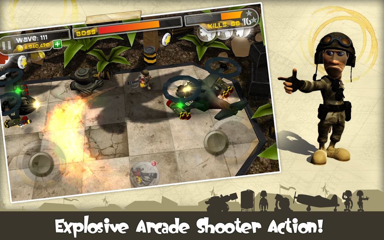 Look lively soldier! Grab your gear and fall in line for the biggest, baddest, craziest and most explosive war game to hit your screens and assault your senses. Total Recoil takes arcade shooters to the max; it’s a warmongers delight, packing a deadly arsenal of kick-ass weapons, devastating explosions, mega bosses, and much, much more into one dynamite package.