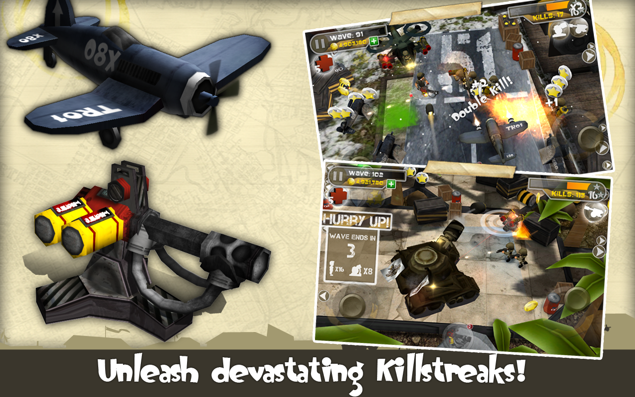 • Unlock ‘Killstreak’ rewards including artillery strikes, sentry guns and dive bombing planes