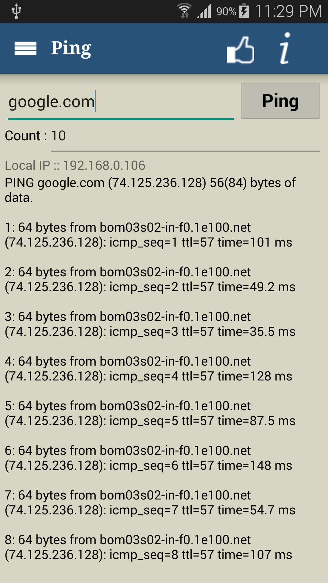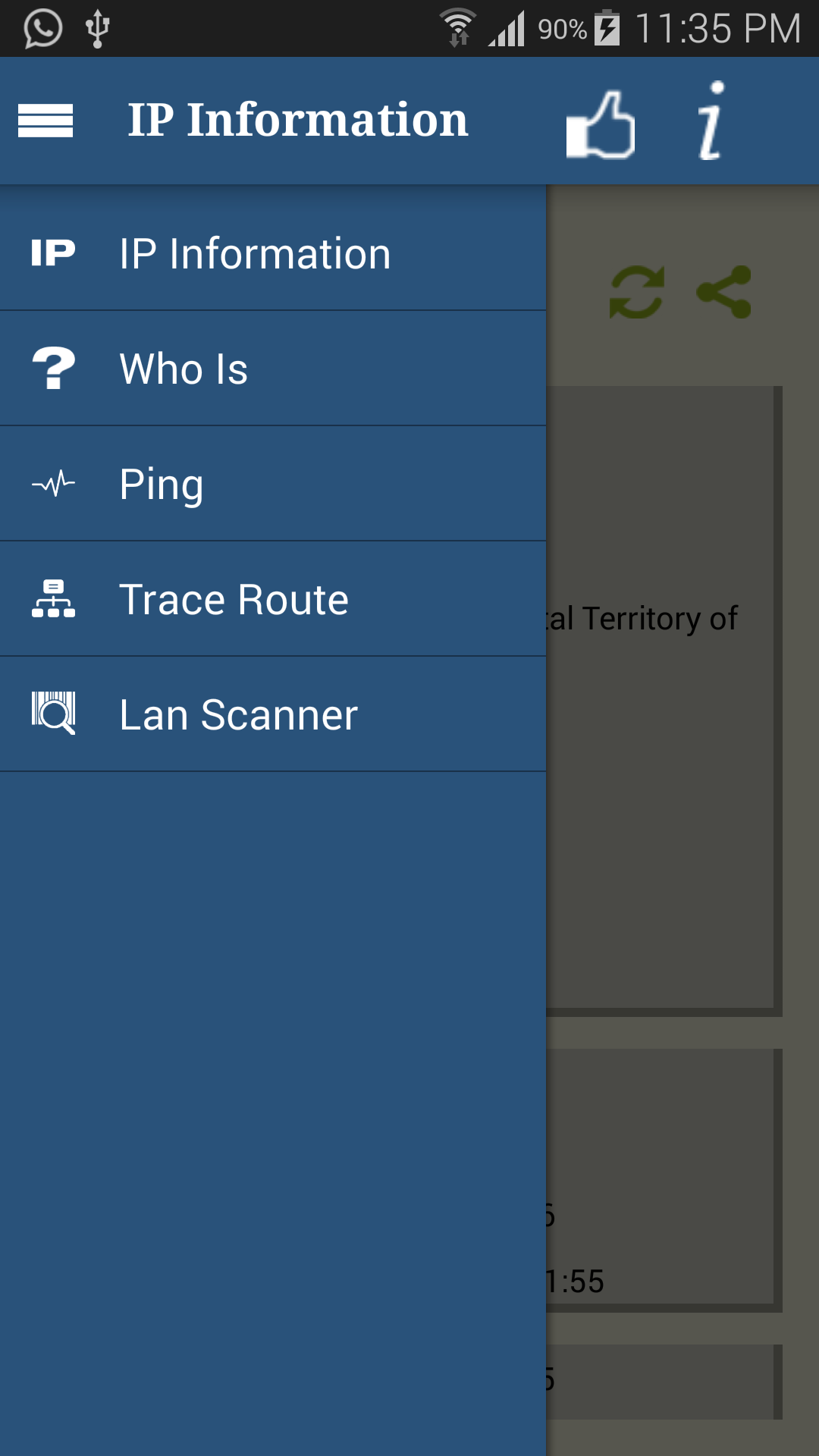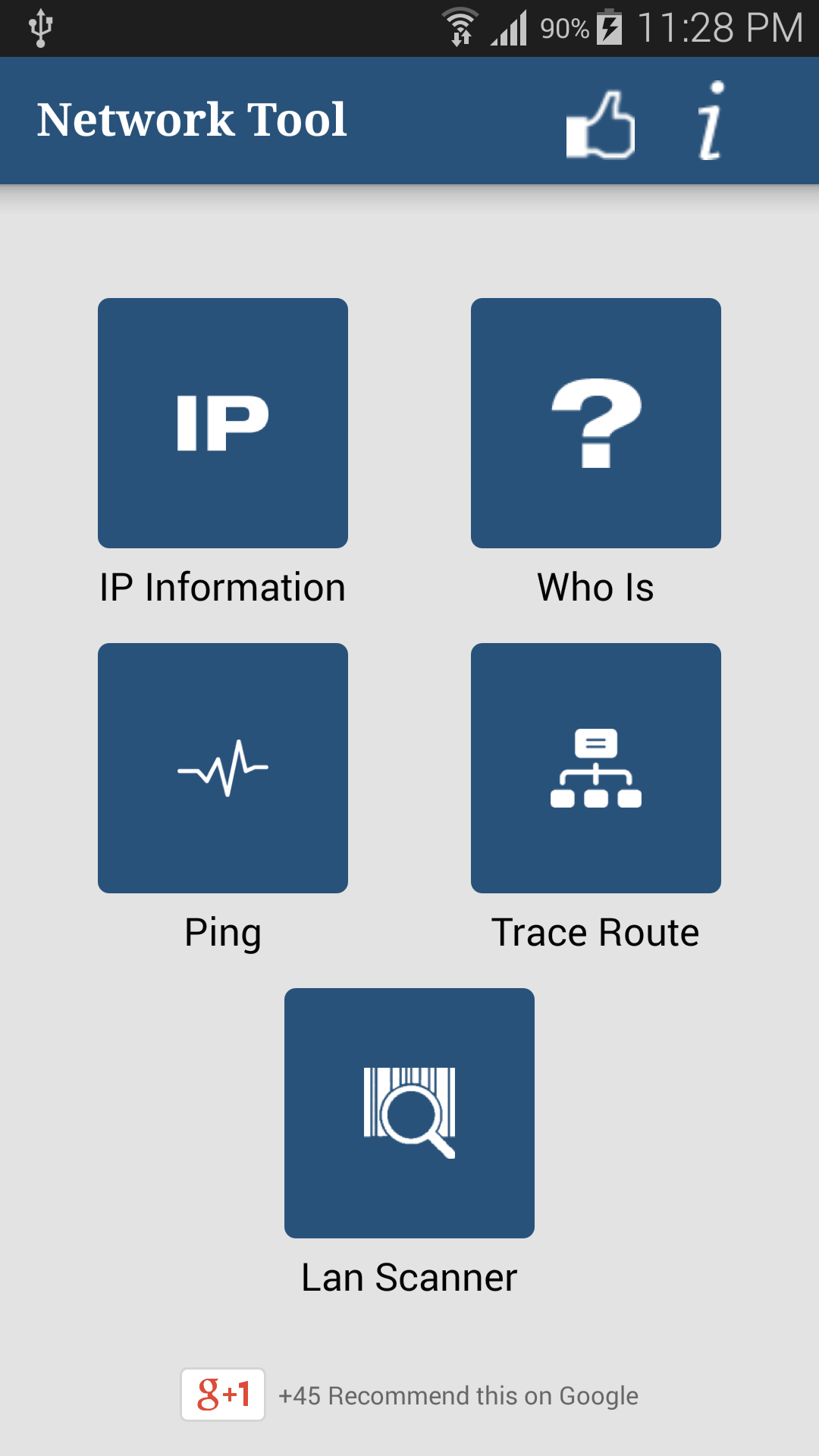 Features:✓ Complete IP detail with Speed,City,Region Mask etc✓ Shows data about the site and its owner.✓ Port scanning, Network scanning.✓Trace Route✓Who Is